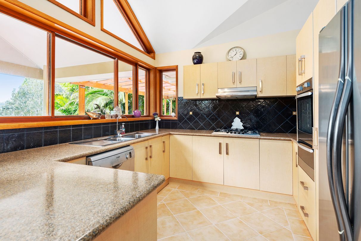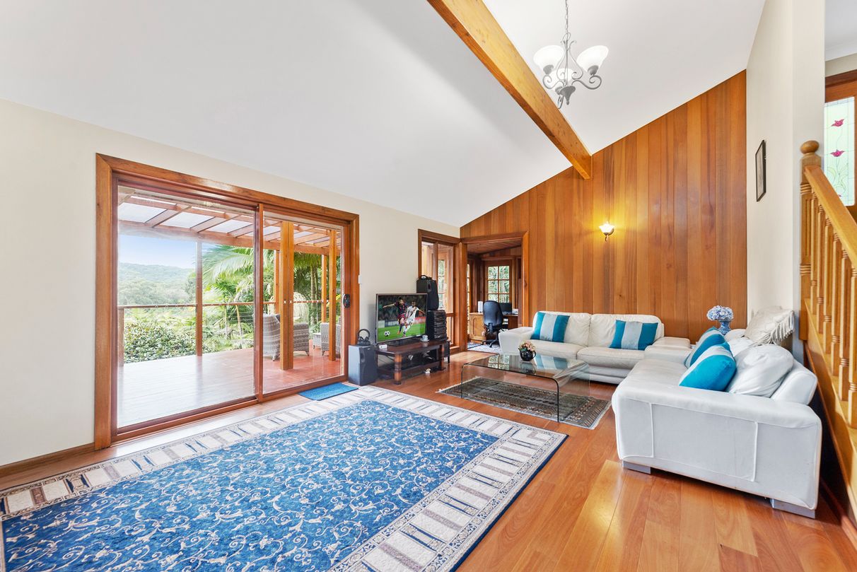 Enjoy the peace and privacy that this exclusive address has to offer. An entertainers paradise, the residence showcases multiple outdoor and indoor living areas including a large timber deck with sweeping valley views; sensational Balinese style gardens with a cabana and a timber deck overlooking the large pond and waterfalls. Surrounded by lush greenery in every direction, be the envy of your friends with picture-perfect tropical backdrops perfect for celebrations of any scale or size. Two indoor living areas showcase high cathedral ceilings emphasising space and light, complemented by beautiful wooden floors and finishings.