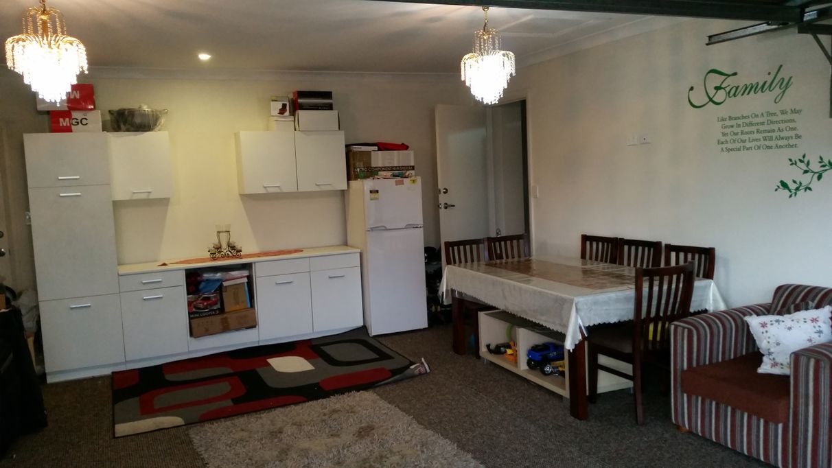 Open plan kitchen with family room. Timber flooring, carpets to all bedrooms. Living room.