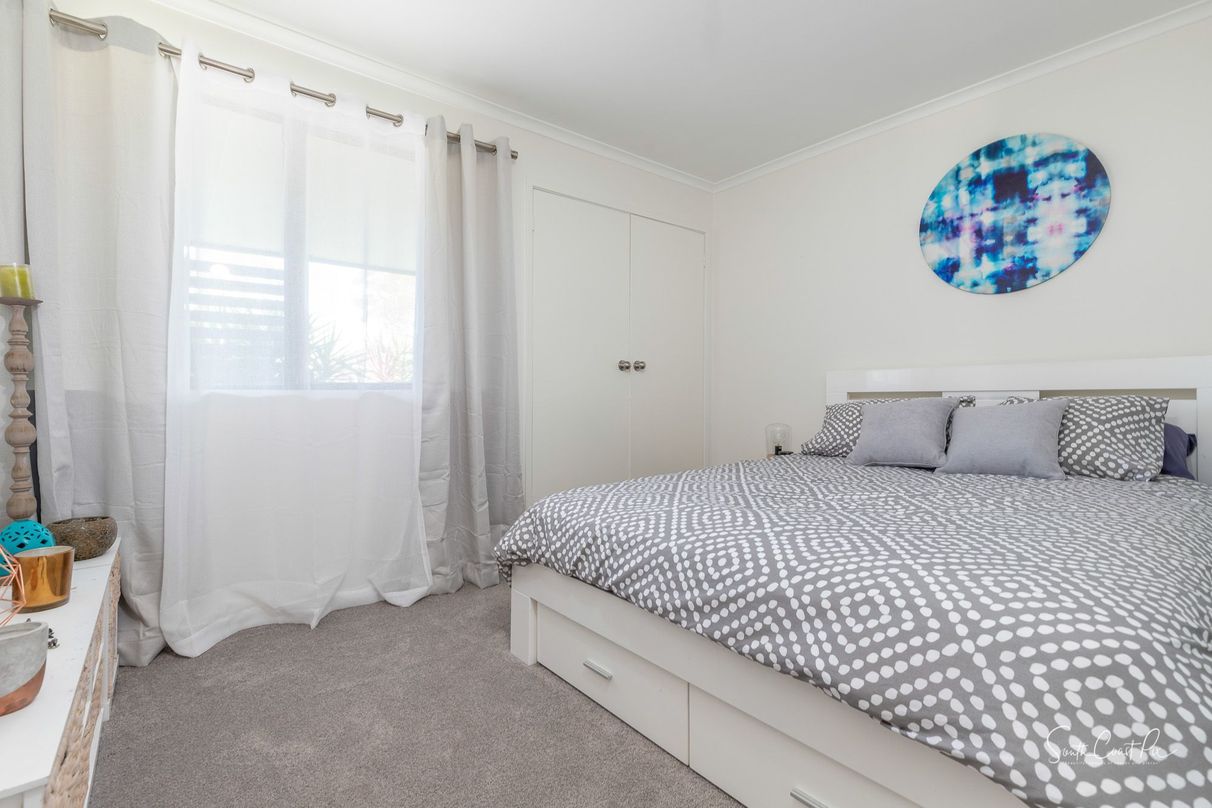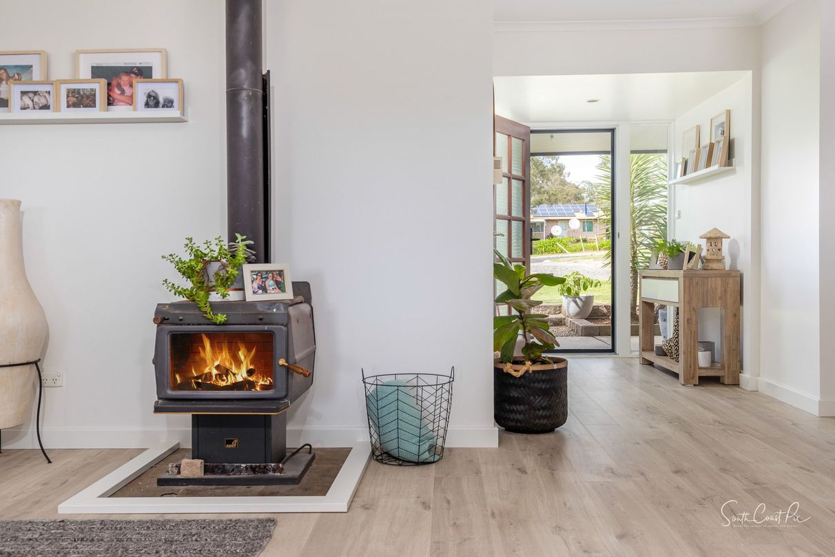 While the home has air conditioning, clever window placement of windows and the lack of neighbours to the left allows for fresh air flow throughout. A slow combustion fireplace provides ambiance and warmth in the cooler months.