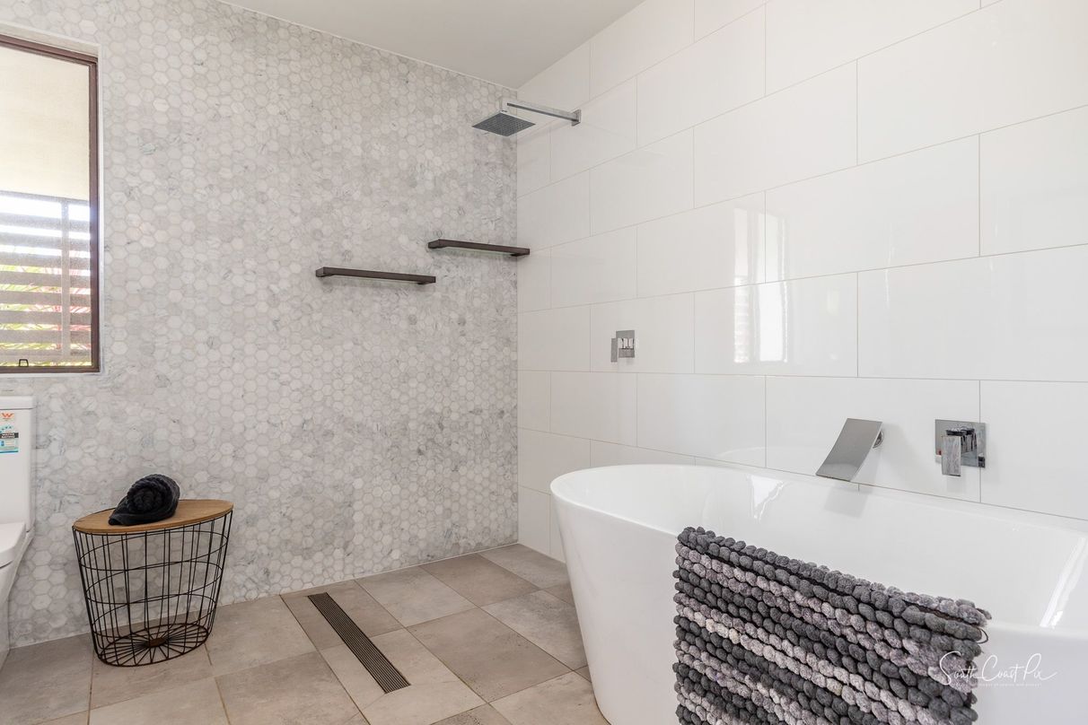 The remaining 3 bedrooms all boast built in robes and share a large decadent bathroom with a gorgeous freestanding bathtub.