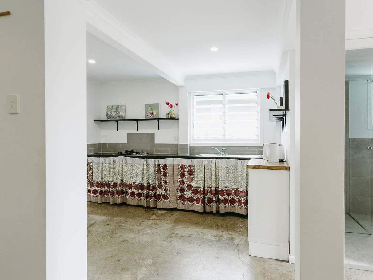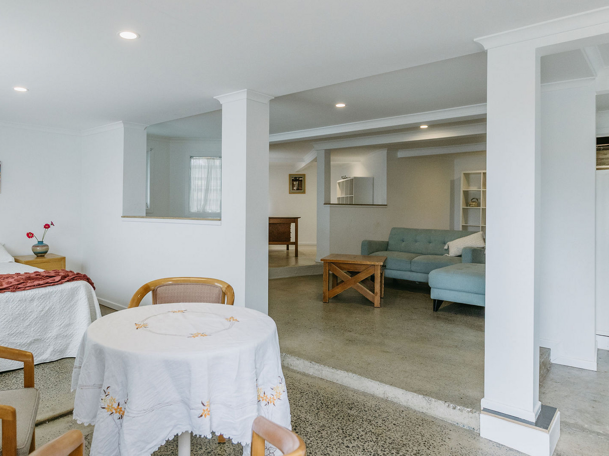 Lower Level. Self-contained studio suitable for rental. Spacious area with kitchen, bathroom, office space, lounge with TV connection and bedroom. New bathroom with separate gas hot water and space for washing machine. Kitchen with gas stove top. Access to undercover carport.