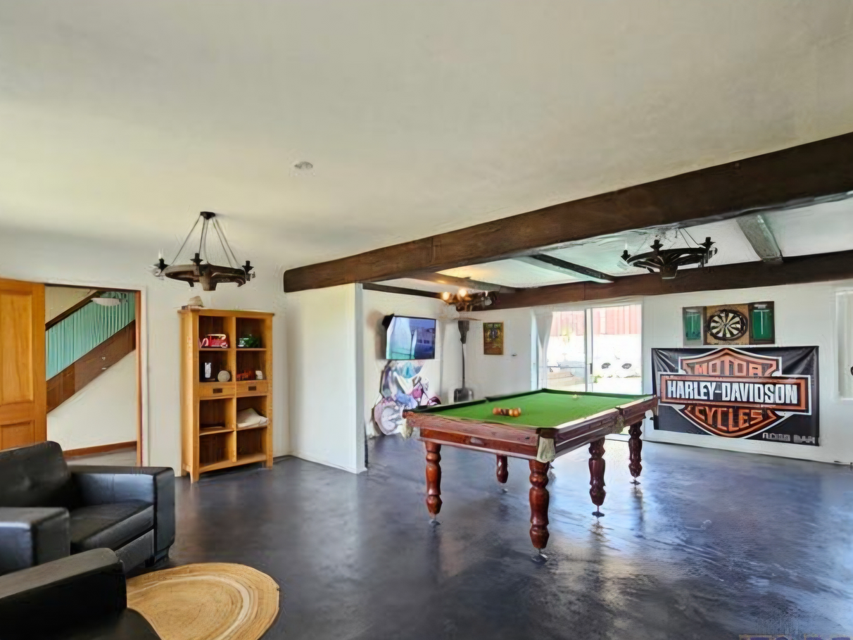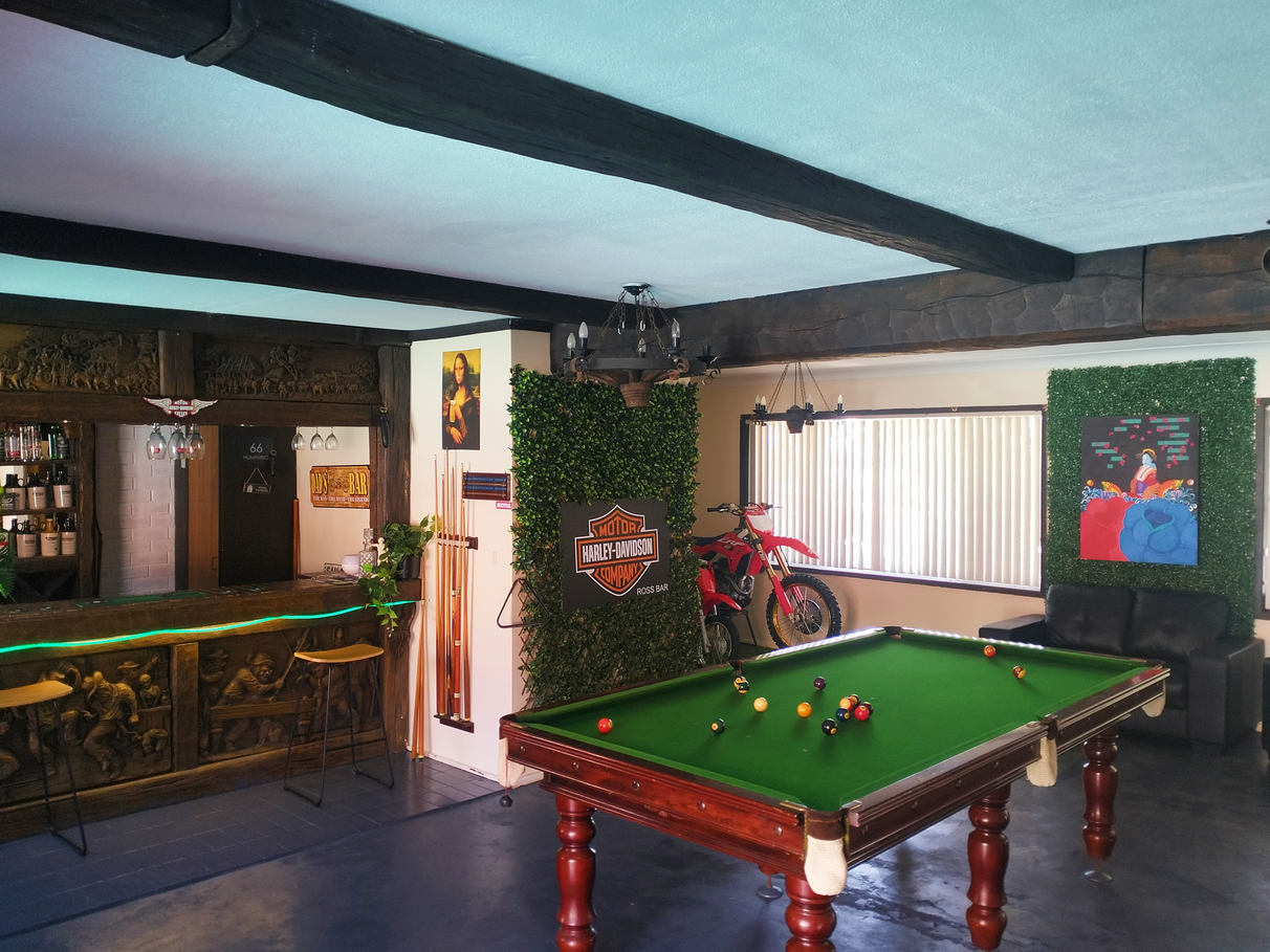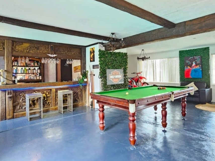 Also a large open plan entertaining Bar area down stairs with full pool table and is equipped with the 3rd bathroom down stairs.