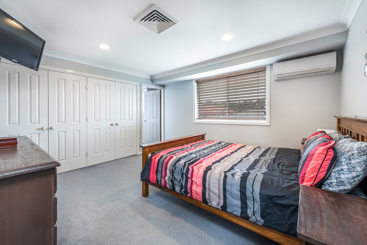Comprising four bedrooms, or three oversized bedrooms with robes, plus a generous study or 4th bedroom. The impressive master with split system A/C and ensuite, and the family bathroom with bath and oversized shower services the rest of the household.