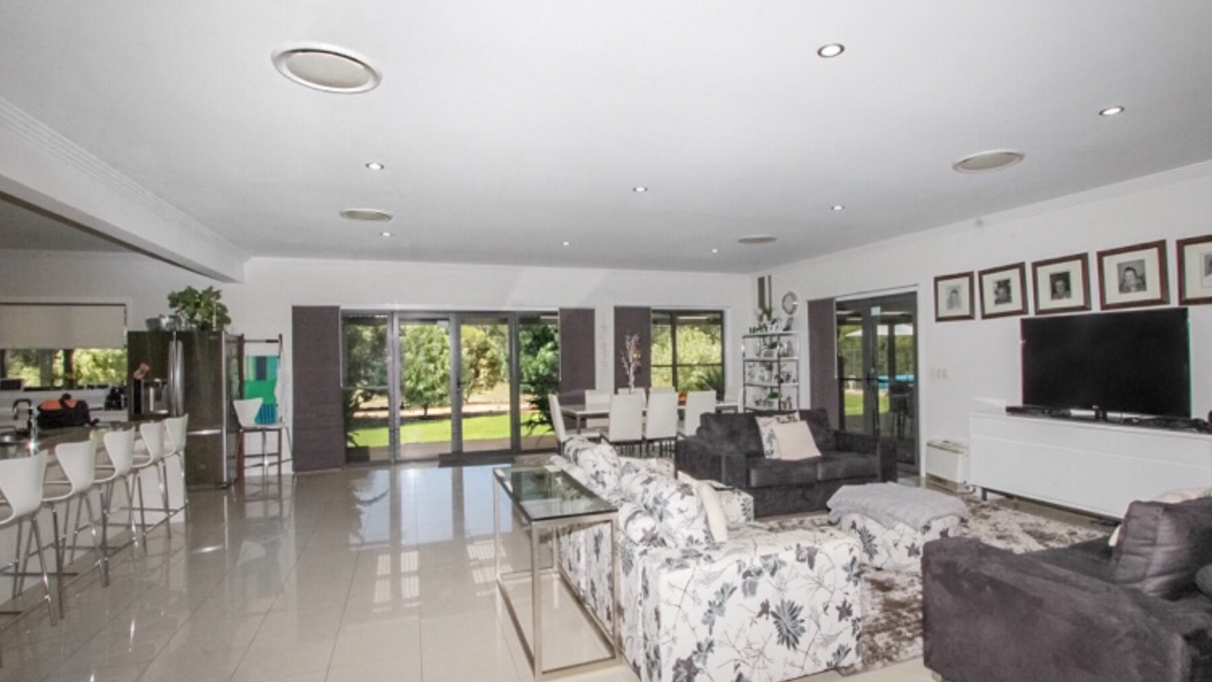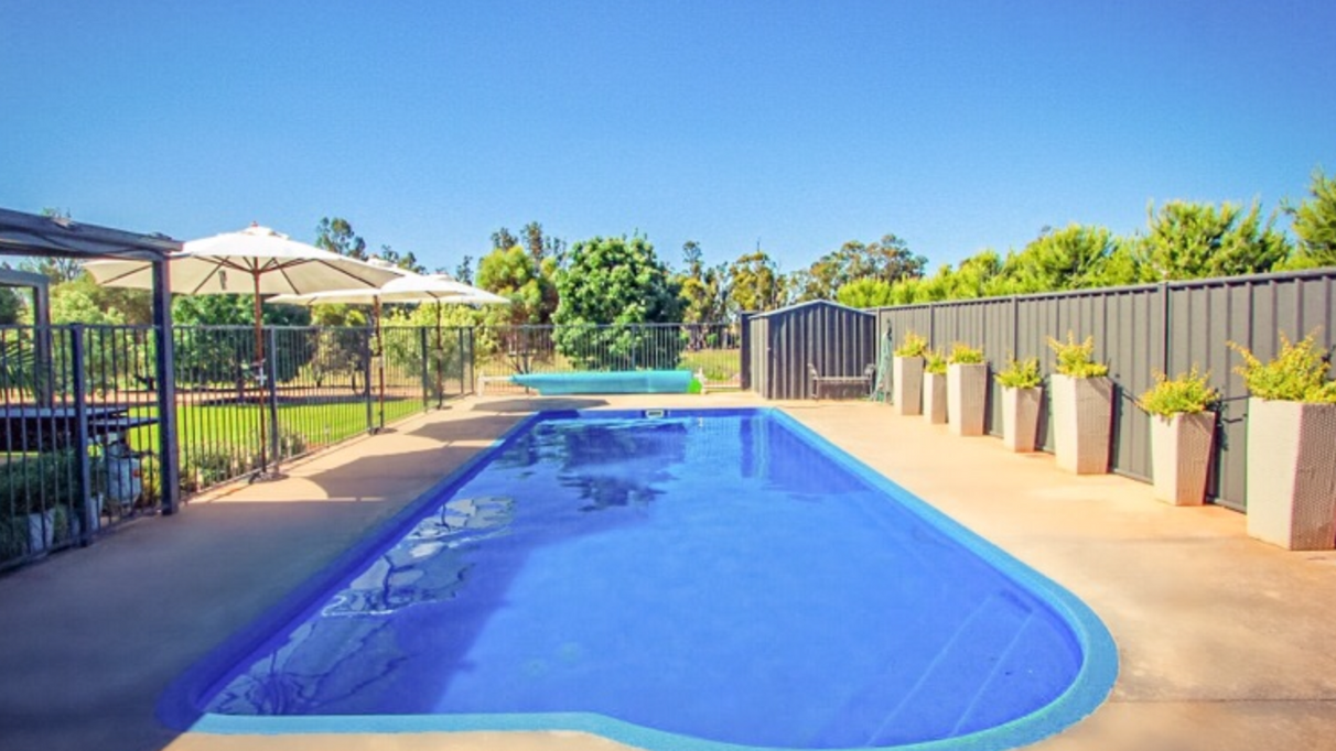 A well established property with river frontage on the Macquarie River, 20 mins from Dubbo. Contemporary 6 bedroom, 70 sq (665msq) on 2.7 acres, 5 bay shed/toilet, 3 phase, pool,sprinkler sys, alarm sys, key less entry, 2.5 bathrooms, 9f ceilings, 4 step cornice,all living tiled, theatre, rumpus, w/in pantry,linen room, office, zoned ducted rev cycle a/c, neutral tones throughout,171 msq tiled alfresco, gas hot water/ instantaneous x2.
