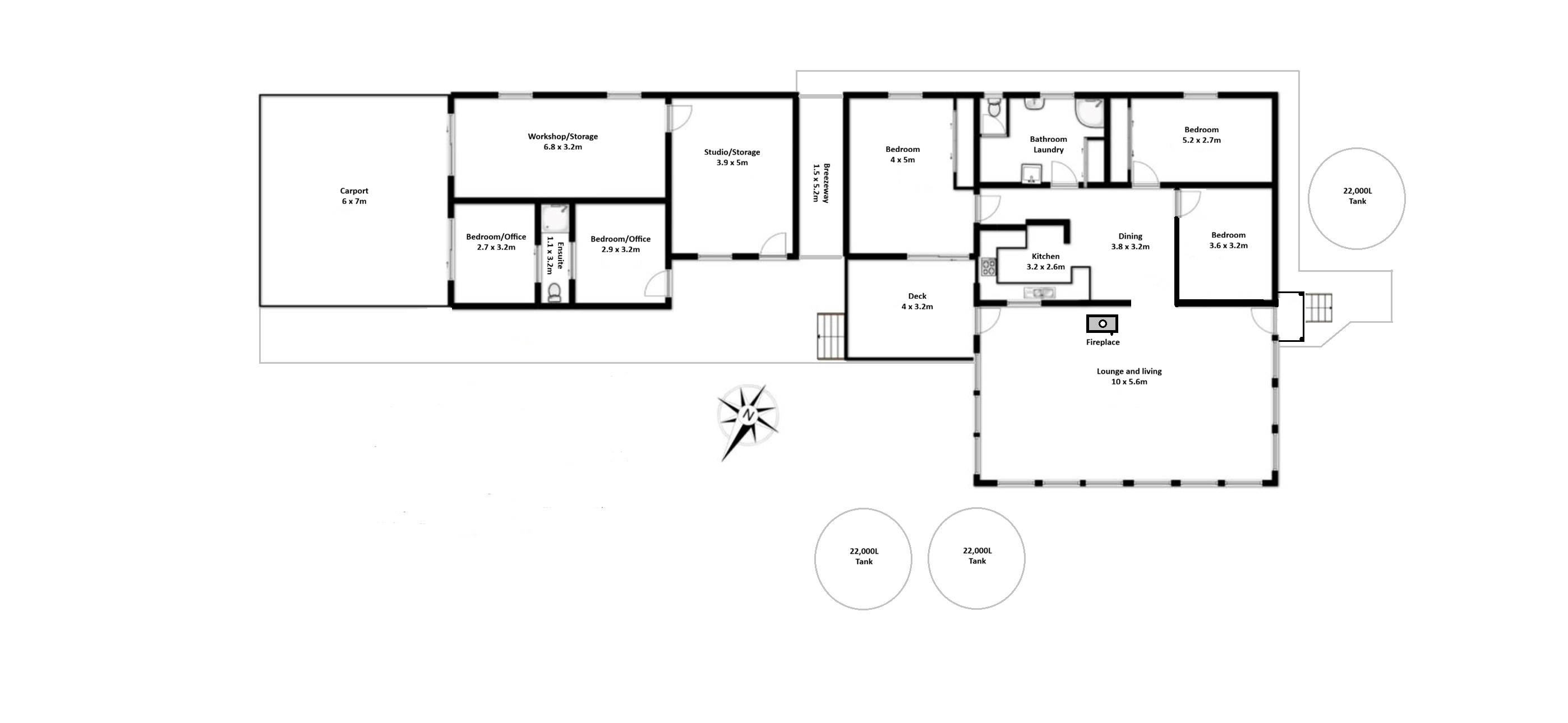 Electricity connected, 3 x 22,000L water tanks, wood-fire and gas heating, electric and gas hot water this beautiful home is walk in ready for a couple wanting to downsize, or a family wanting space and having the added benefit of an optional teen retreat or Granny Flat.