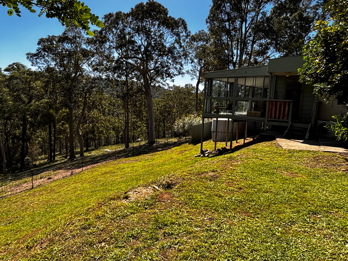 Situated 1.5km off the Kings Highway on a private ridge with only few neighbours there is minimal traffic and the dirt road caters for 2wd all year round. Conveniently west of Nelligen bordering the Currowan State Forest with beautiful bird and wildlife, it is away from the hustle and bustle, whilst only being a 2hr drive to Canberra. Providing the peace and tranquillity that is so hard to find and priceless during these uncertain times.