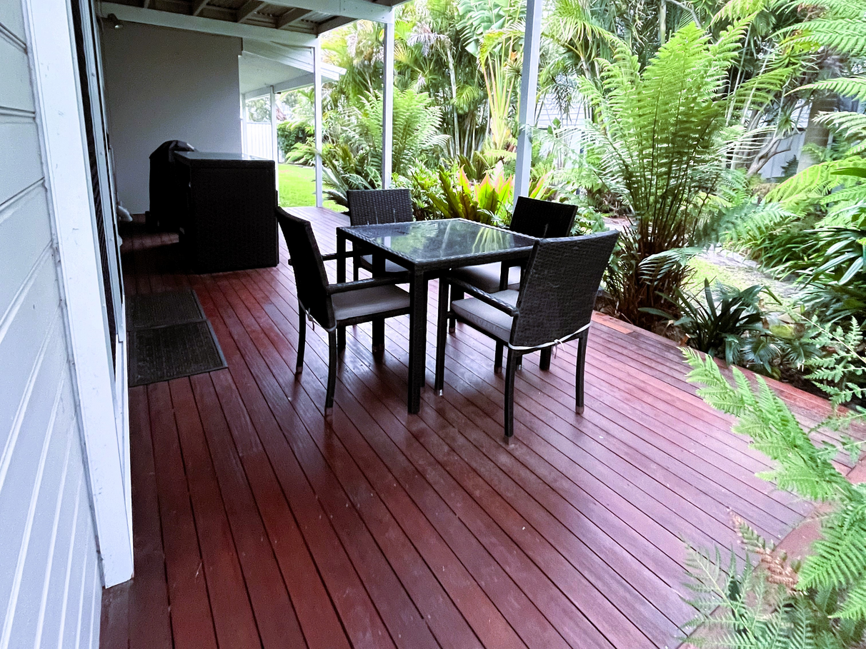 Just a casual 200m stroll to Tranquil Cabbage Tree Bay, with sheltered rockpool and public boat ramp.