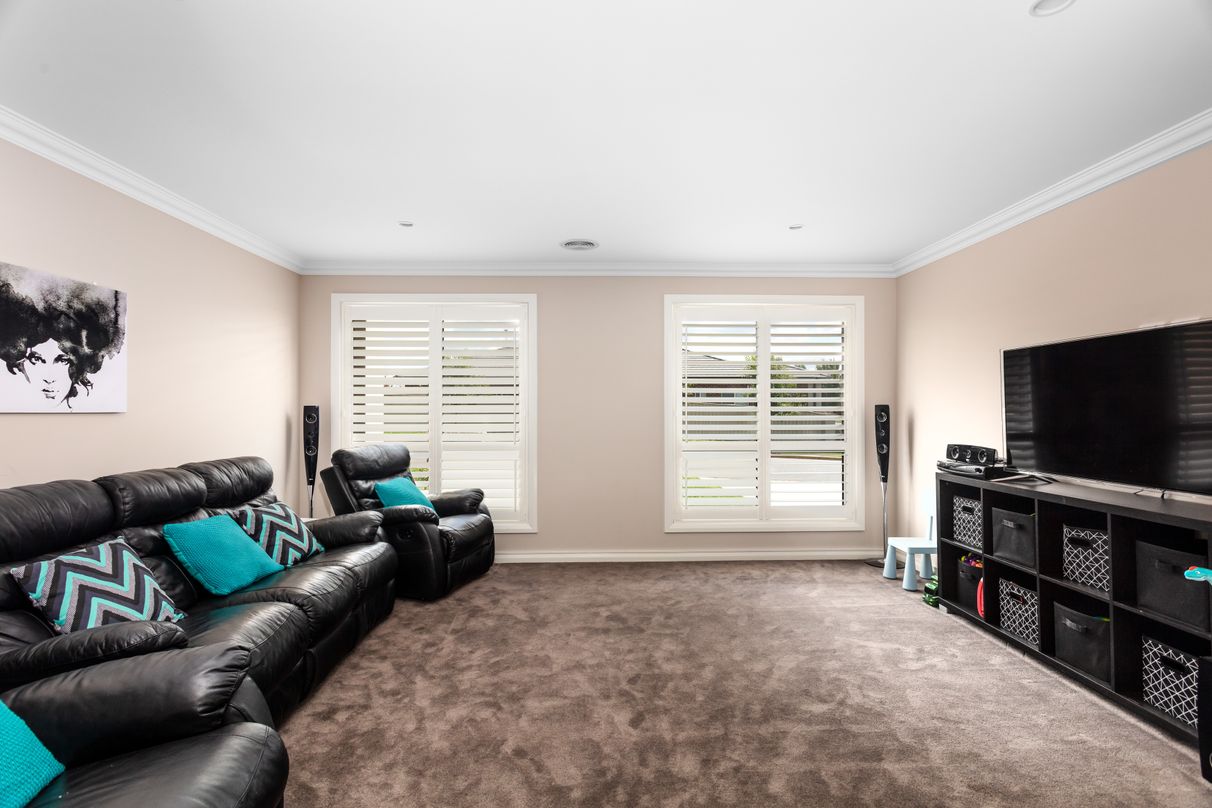 Plus, a separate lounge room and theatre room allowing you to entertain guests in one room whilst the kids relax in another. Both the theatre room and living room open out through floor-length glass sliders to a fantastic outdoor entertaining area, extending the living to an expansive indoor/outdoor environment. It comes complete with an outdoor gas outlet, perfect for attaching heating or a BBQ. Covered in for enjoyment all year round, you will love dining alfresco with loved ones, or enjoying quiet drinks with friends in the warm summer's breeze.