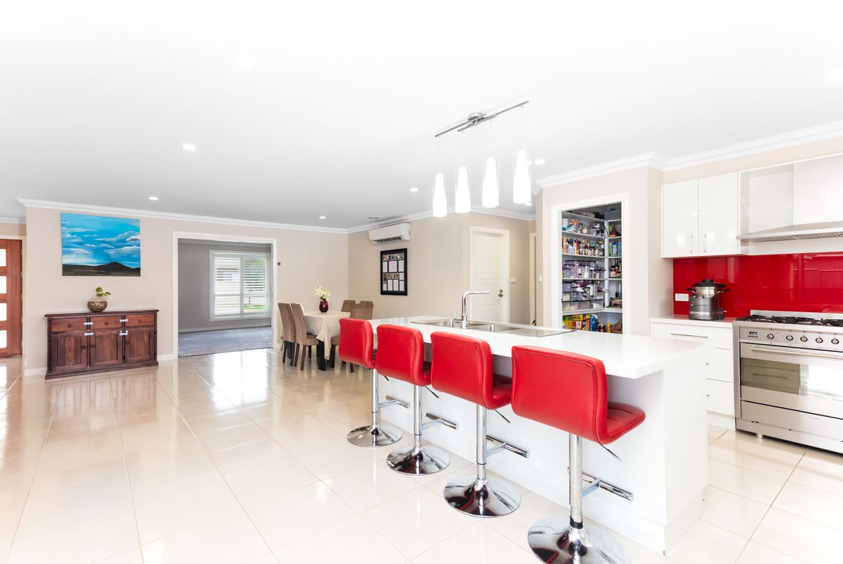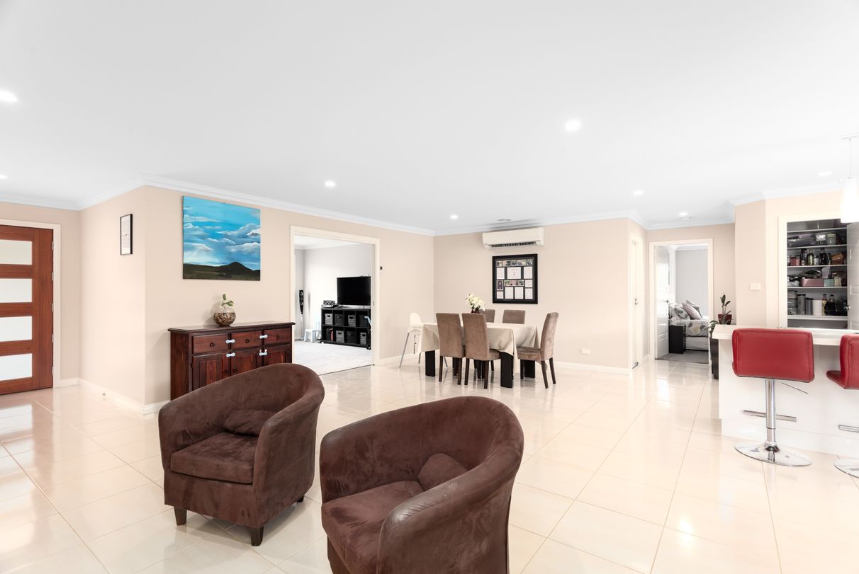 On a large 1558 sqm block, built by Ray Straney around 5 years ago, this wonderful home was designed to ensure everyone in the family has more than enough of their own space to enjoy and escape to now and then. Boasting an elegant street presence, you will fall in love as you step past the lush lawn, simplistic front garden and up to the modern facade. Built to a high standard, it allows for the perfect melding of convenience and luxury. You will be impressed by the quality finishes and fixtures, fresh neutral colour palette, tiled floors, plush carpets, gourmet kitchen and three sensational living spaces.