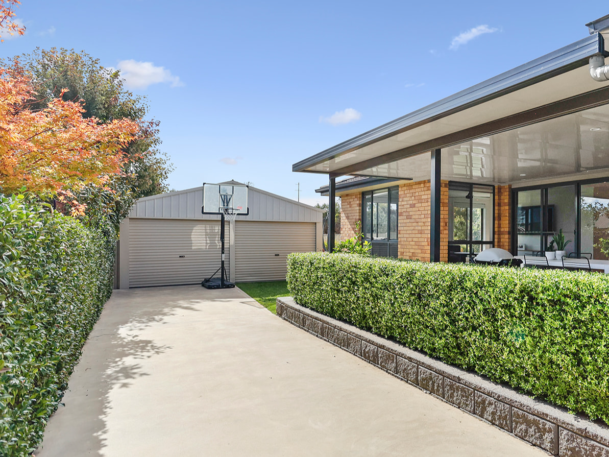 - Side yard access with sealed concrete driveway