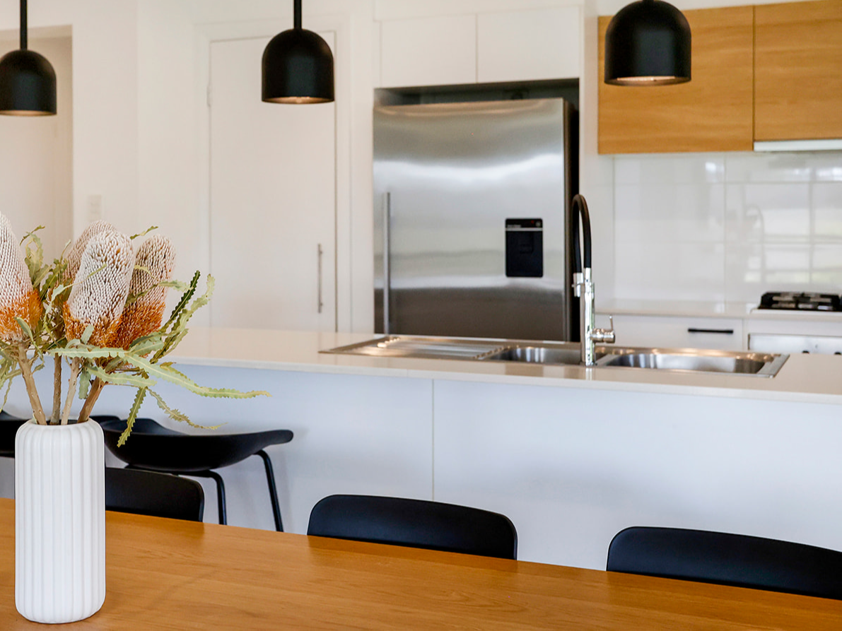 - Kitchen with stone benchtops