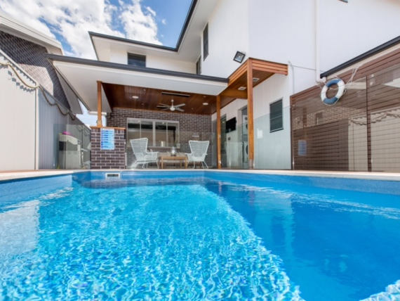Impressive Pool Area: Enjoy the outdoors year-round with a beautifully landscaped garden and sparkling in-ground pool, ideal for relaxation and family fun.