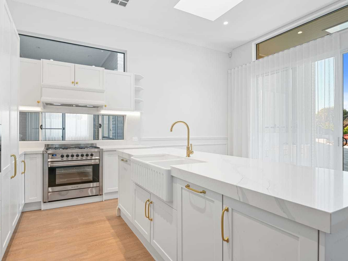 Contemporary kitchen with stone benchtops, gas cooking, and ample storage