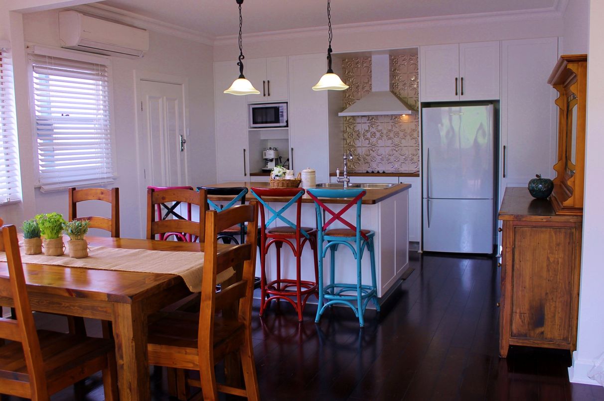 Bamboo Flooring throughout Living Areas which flows through to the Custom Built Kitchen.
