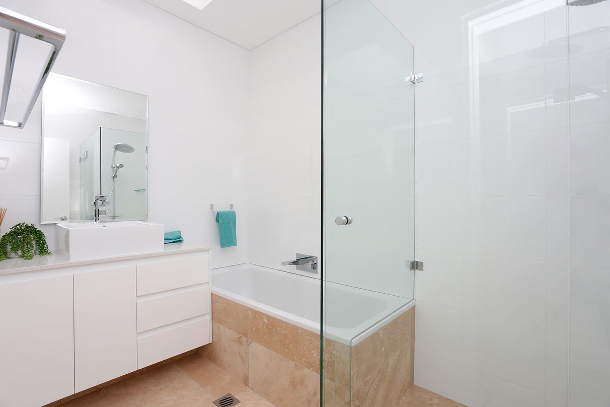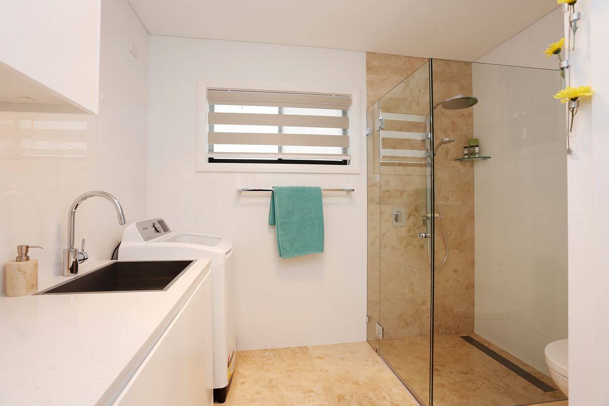 Stone surfaces throughout - kitchen, bathrooms & laundry plantation shutters