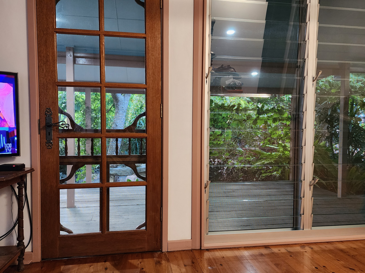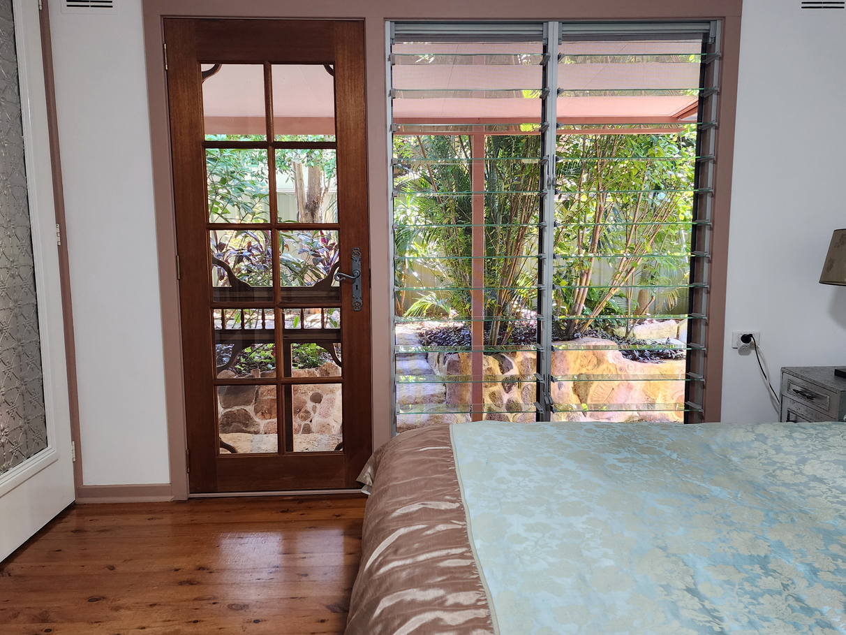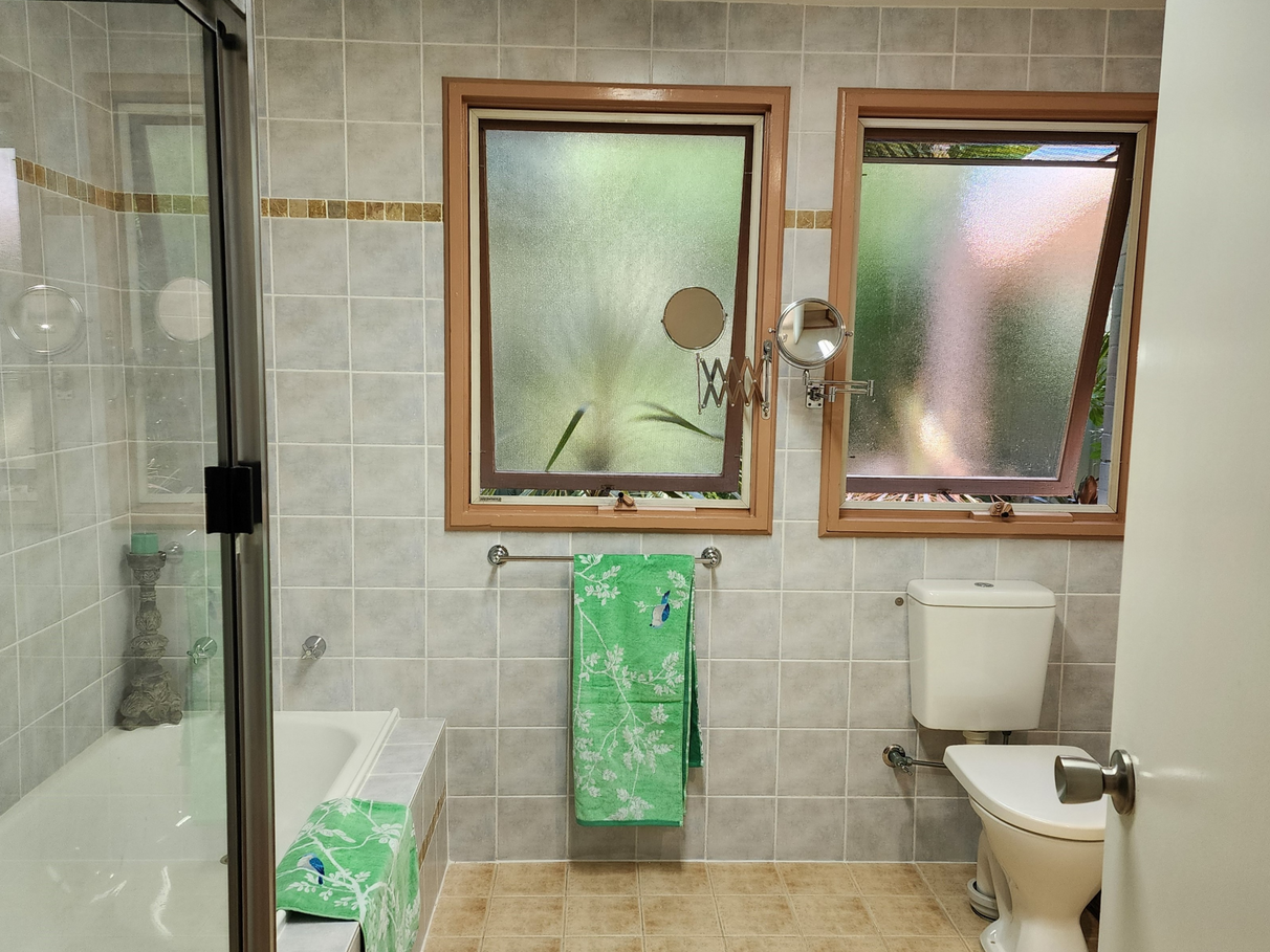 • Energy efficiency. The new roof has a double thickness insulation and 10 solar panels ready for a battery. The quarterly electricity bill is $150.00 for 2 people. The front veranda, studio and north facing patio also have insulated ceilings. Ceiling fans and a powerful ventilation system ducted to 4 rooms will remove hot air from the house in minutes. There are 3 sets of louvres backed by stainless steel security screens – so they can be left open when you go out. On hot days the house is cooler than the neighbour’s homes without air conditioning.