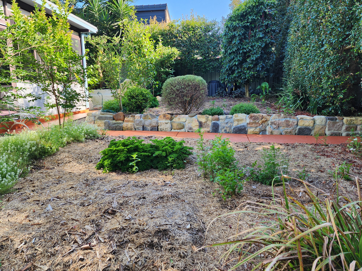The back yard is a highly productive vegetable garden that is cleared and ready for you to plant, with the established asparagus and coffee etc. Fire retardant hedges are planted close to fences.