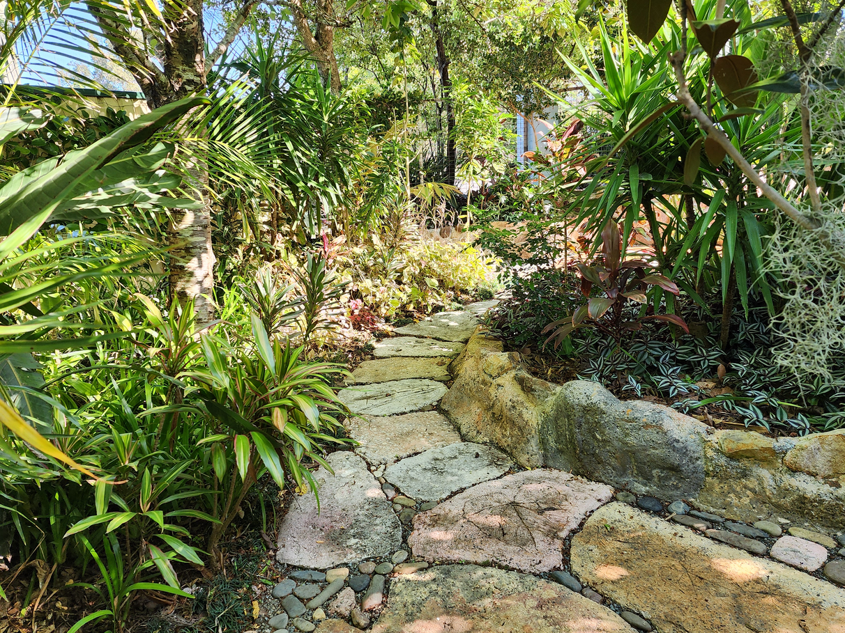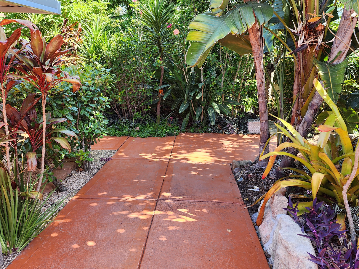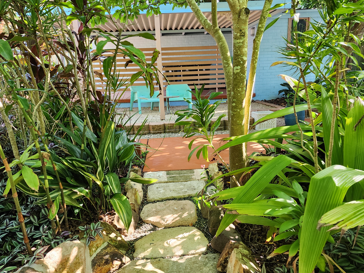 A large home with a spacious art studio / work-from-home base, set in a private tropical oasis. Relax and enjoy working from home.