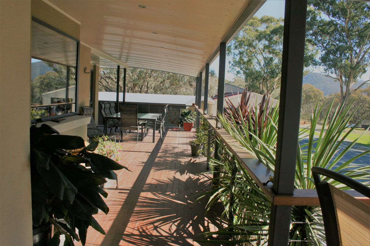 A beautifully appointed kitchen offers plenty of cupboard space, stainless steel cooking appliances and hidden dishwasher with a red splashback complementing the design. Overlooking the large dining/living area glazed in natural sunlight and flowing seamlessly through large stacker doors opening to the huge timber deck, extending right around the front under a deep-set veranda - where, after dining alfresco, you can retreat inside to the formal lounge for some quiet time in front of the wood heater.