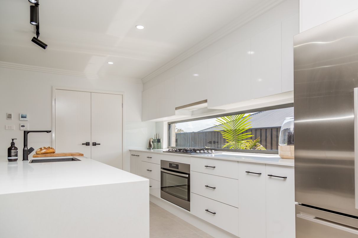 Countless high-end inclusions feature waterfall stones bench tops in the modern kitchen with window as splash back complimented with Matt black under mount sink and tapware, walk-in pantry, Stone bench tops in bathrooms, fully ducted air- conditioning and downlights throughout, 3-step cornice, plantation shutters, Security mess screens, quality landscaping, underground irrigation, stunning outdoor kitchen, and many more outstanding finishes and details.