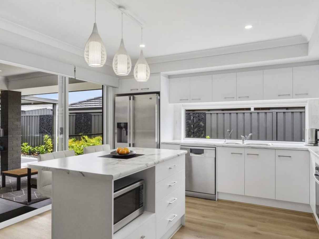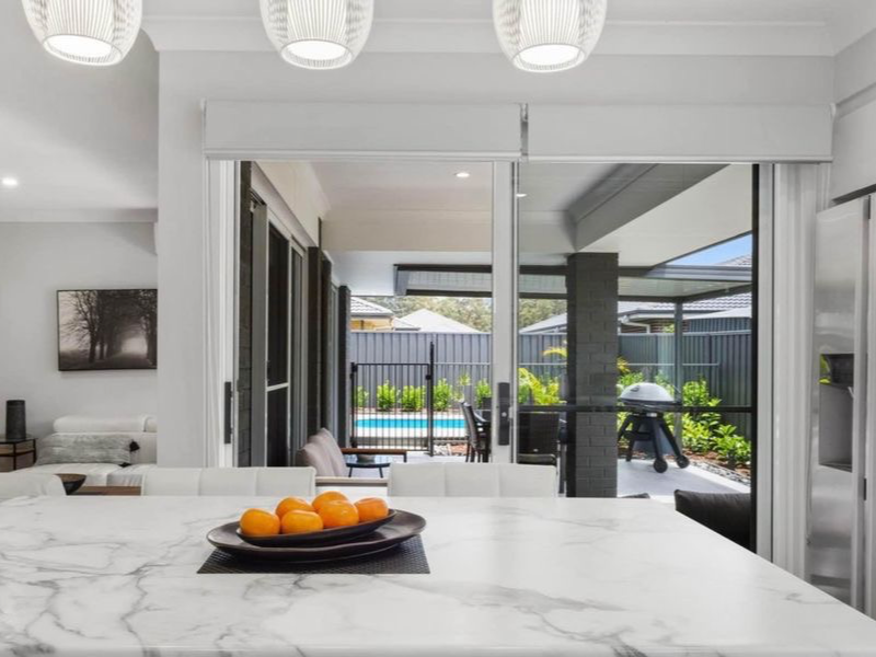 The air-conditioned open plan kitchen, dining and living areas are all central to the home and are benefited by two lots of sliding doors which lead out to a large tiled and covered alfresco area overlooking the inground pool and landscaped gardens, a great space to entertain with family and friends.