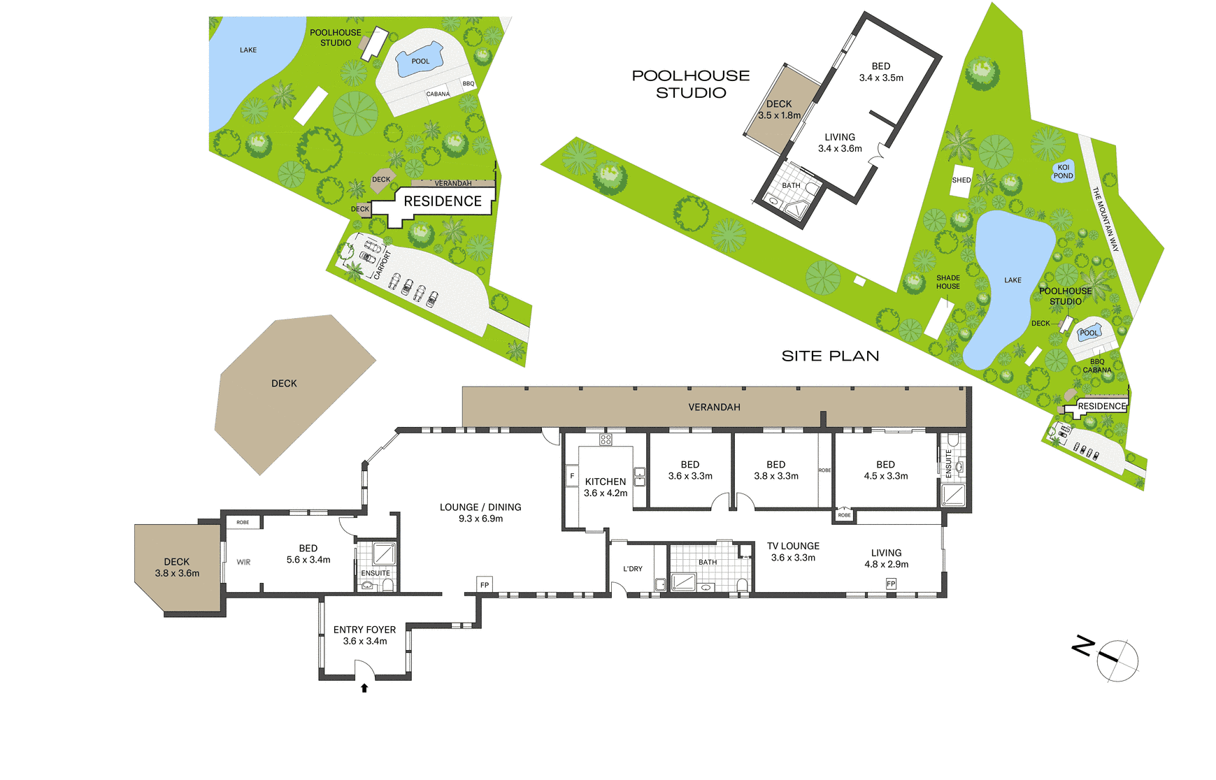 The property is an impeccably designed four-bedroom residence plus stand alone one bedroom studio; it is perfect for families, buyers looking for a complimentary high income accommodation or health related business, or a substantial home for the passionate gardener/horticulturalist that is unmatched. Set in private, low maintenance, established landscaped gardens alongside a lake, this stunning property offers eclectic design and elegance with a hint of Retro to its 70’s origins. This really is a one off opportunity to become the owner of the region’s most outstanding hidden gem.
