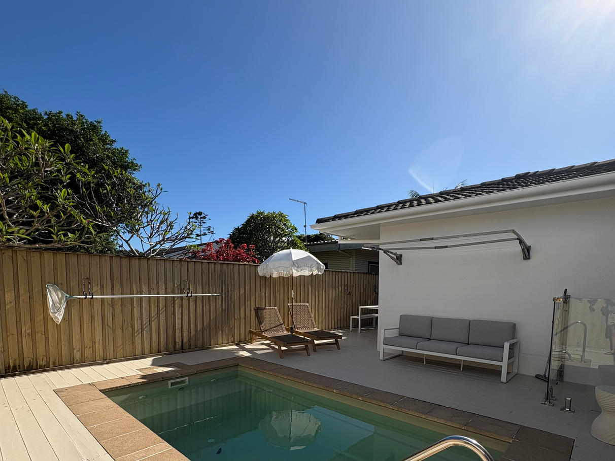Freshly renovated beach house 100m to the beach, 5min walk to the main street with cafes and boutiques, 3minutes to the creek/inlet, quiet hidden street, currently set up as Airbnb sleeping 10people comfortably, lovely pool area, a dream home in beautiful Sawtell!
