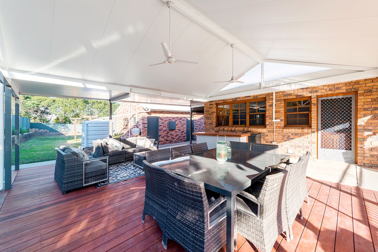 - Huge decked alfresco with built-in bar - under a lined/insulated, peaked-roof patio