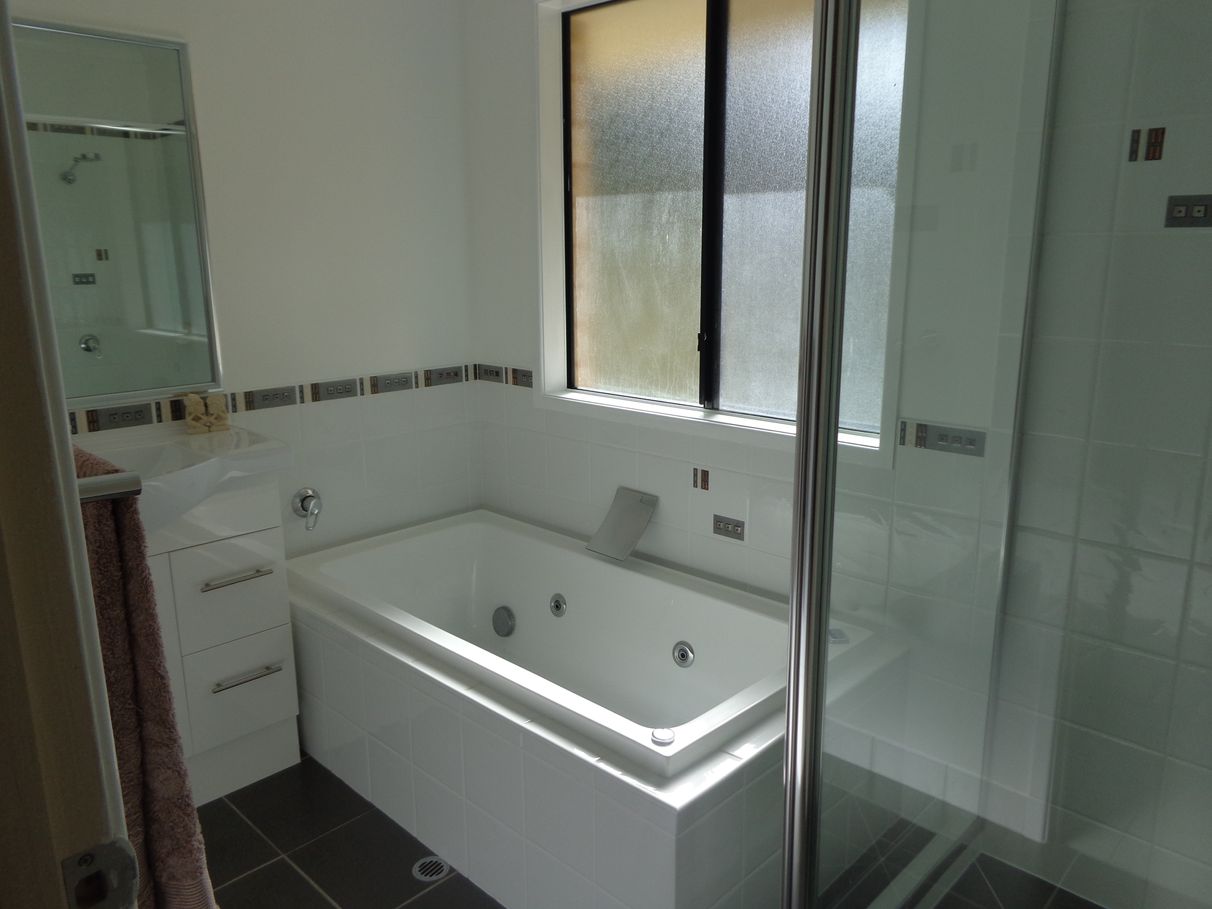 The main bathroom has a spa bath and a separate toilet. Another small bathroom is situated down stairs for convenience.