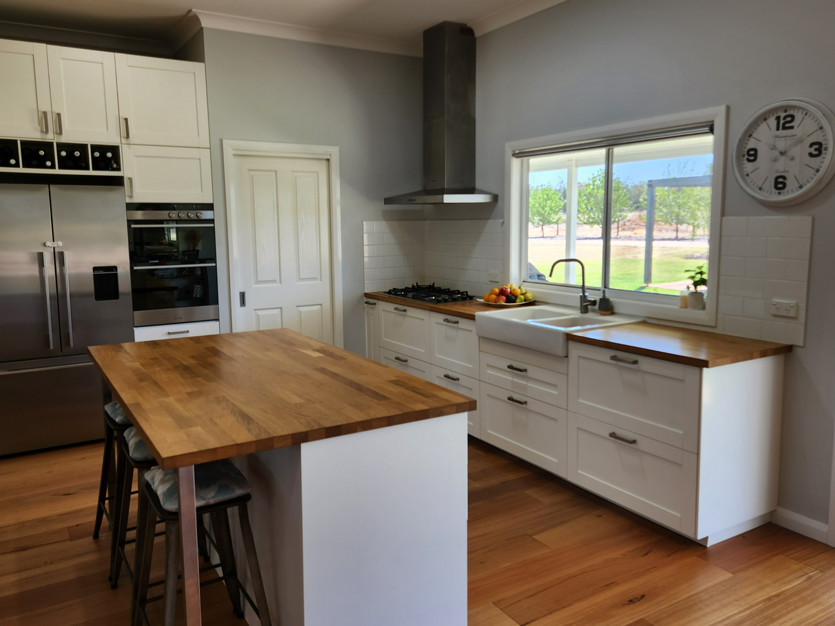 - Hamptons style kitchen with large walk-in pantry, soft close draws, double oven, dishwasher and plumbed in water for your fridge