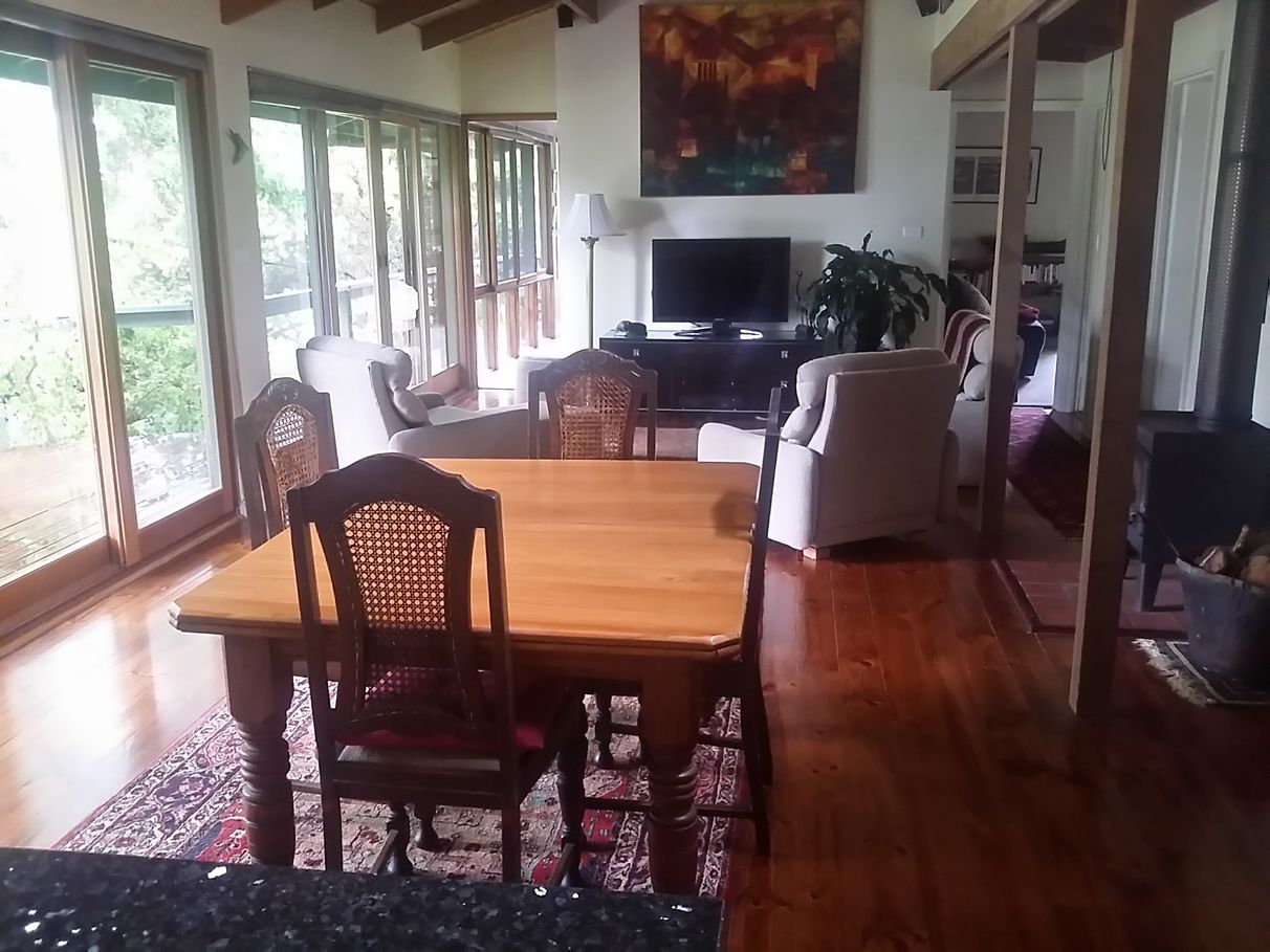 The deck looks out over lawns sloping to the water edge of Tuross Lake which is restricted to recreational fishing. To one side, between the house and the lake is a solar heated swimming pool, enclosed kitchen garden and small garden shed.