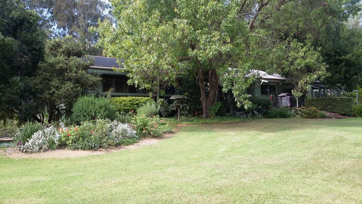 Set in a corner of the estate, this single level house, on 1.3 acres, has 3 bedrooms, a study, modern kitchen and family area, 2 bathrooms, laundry, and a large dining/living room. It combines the use of attractive timber features and lofted ceilings. The extensive use of glass captures the lake outlook and well developed rural garden. The house has split cycle air conditioning, a wood stove and solar hot water. There is 100,000ltrs water storage and a bore