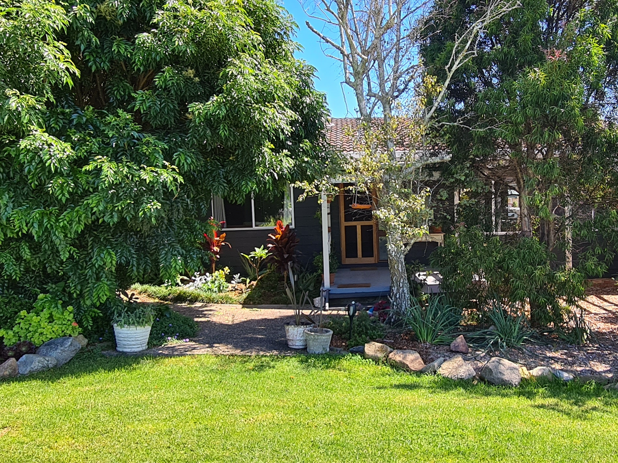 A sunroom at the rear of the house overlooks the backyard with excellent views of Coila lake.