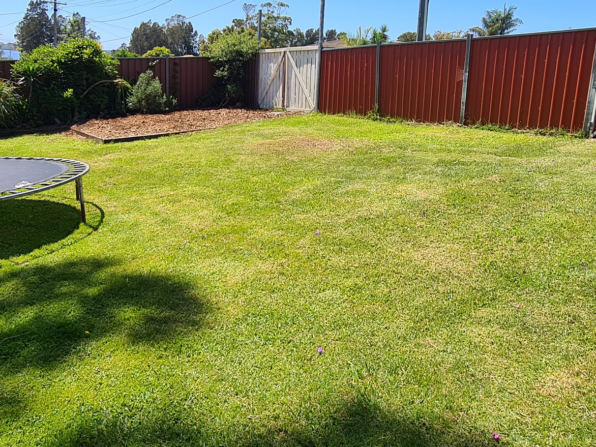 The backyard is fully fenced, with a new colour bond fence on the neighbours side.