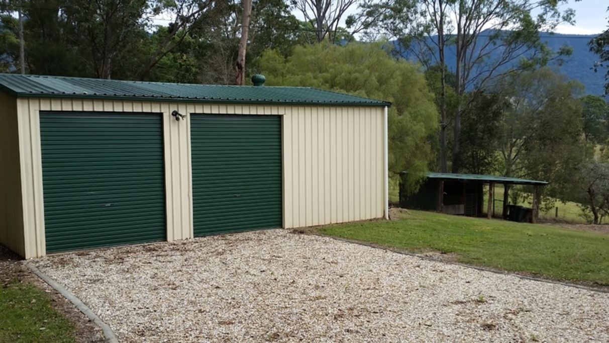 Double carport and 9 x 7 metre Colourbond shed. Other features are a horse stable, vegetable plot and garden shed.