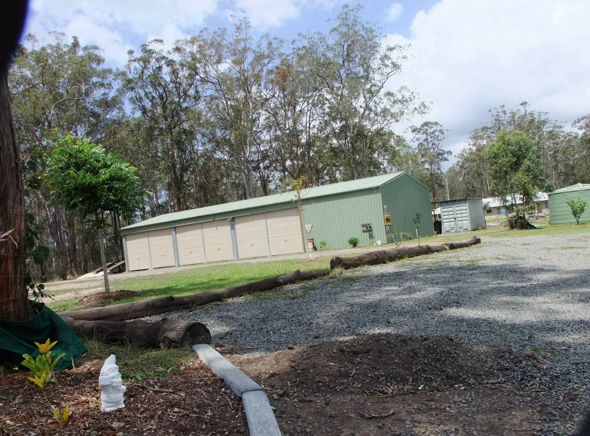 Large storage 24x10m shed heavy-duty truck ramp, workshop with 2 bay garages.
