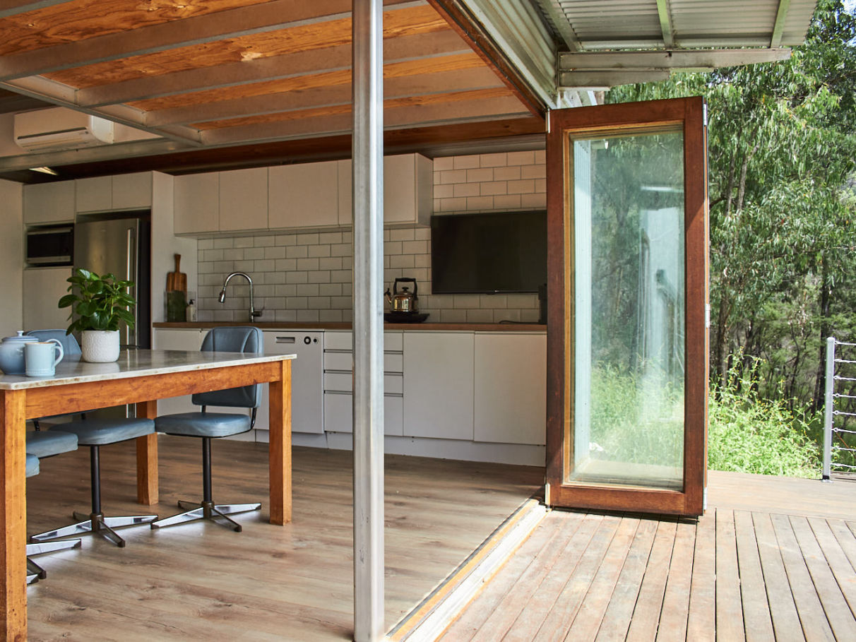 • Combined lounge and dining room opens out with full bi-fold doors to the deck with breath-taking views. Loft space over the living area is suitable for guest accommodation. Reverse cycle air conditioner and fireplace.