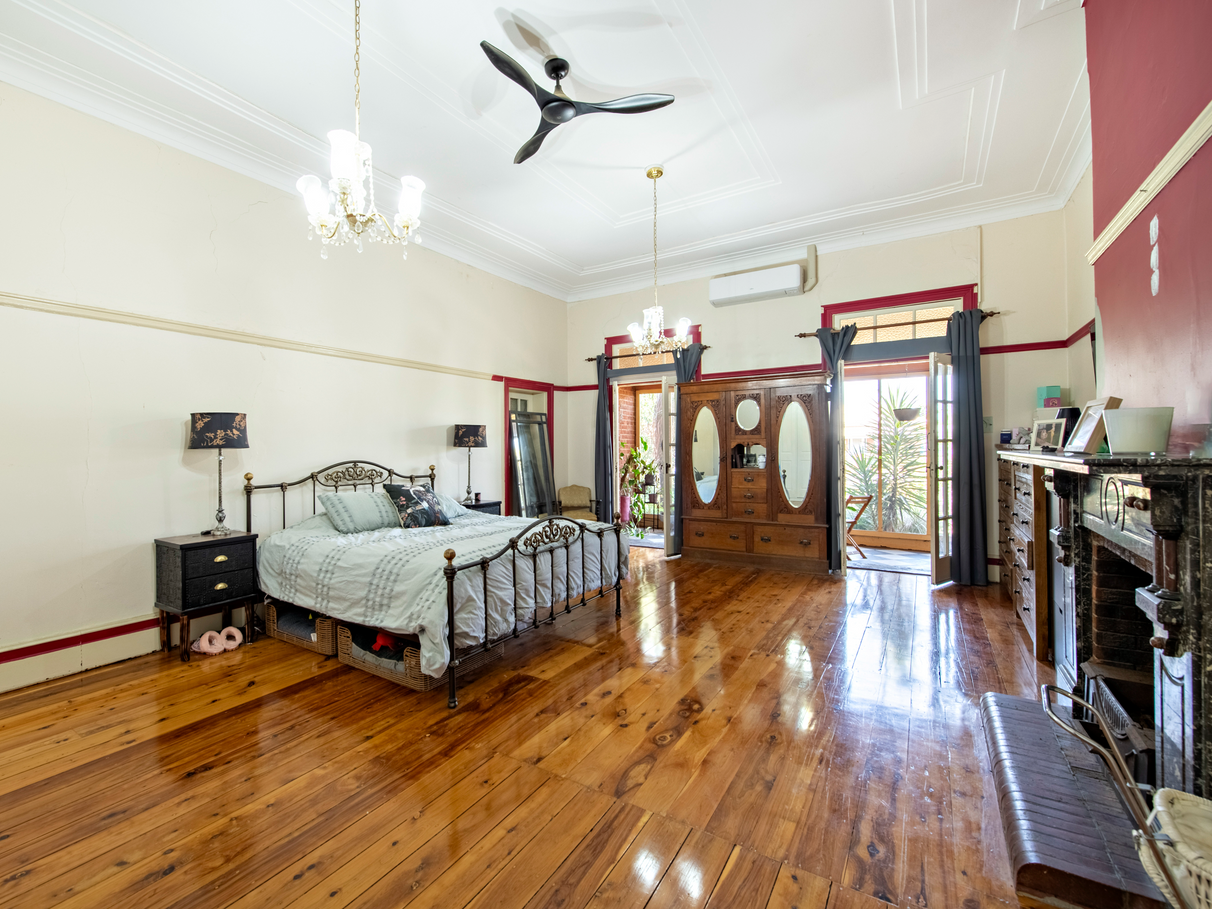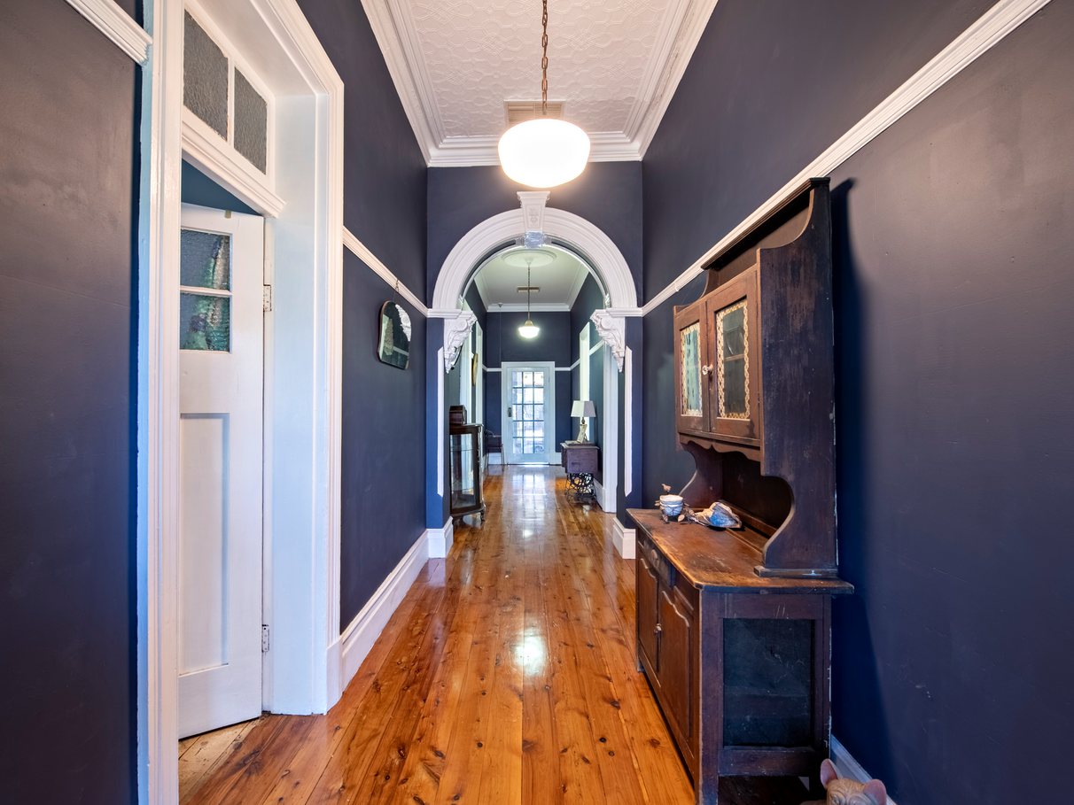 The grandeur of this property is immediately apparent, with 7 generously proportioned double bedrooms, each thoughtfully furnished with built-in wardrobes. The home is adorned with lustrous polished floorboards and showcases exquisite pressed metal ceilings, further enhancing its enduring allure. In the cooler months, indulge in the cozy ambiance created by 5 stunning open fireplaces, three of which feature exquisite marble mantels.
