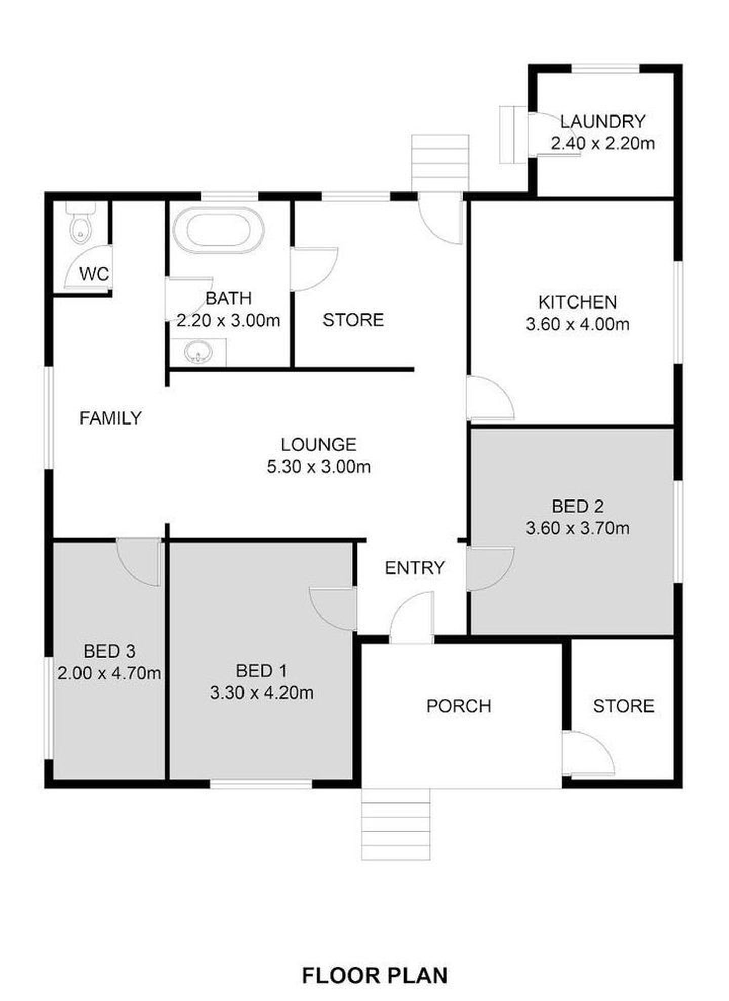 It has 2 large bedroom and a small 3rd bedroom, a spacious kitchen, old bathroom, separate spacious laundry. With a secure yard for children and/or a dog.