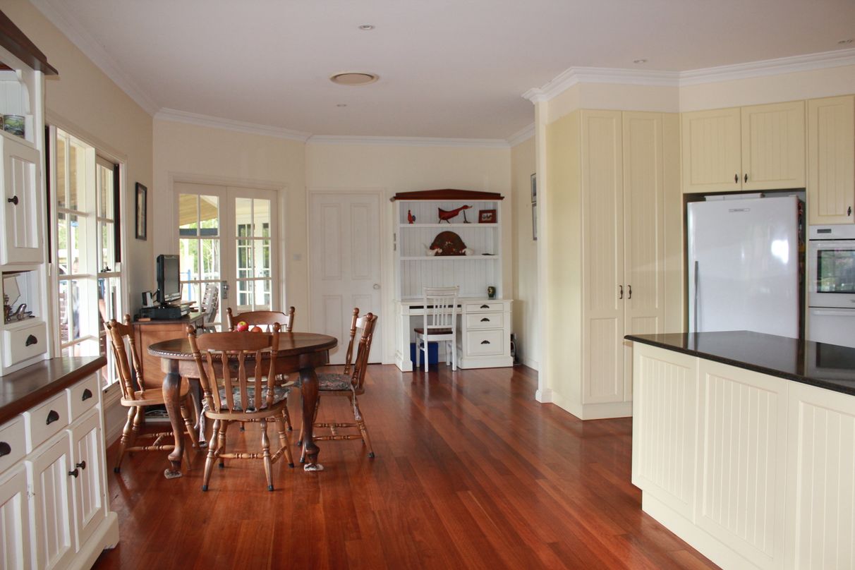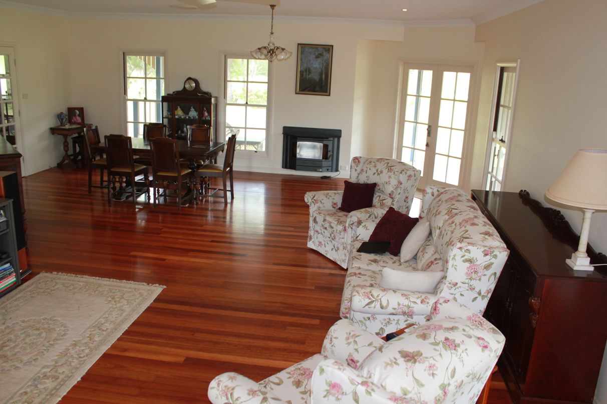 Located on a ridge via a tree lined driveway, is a three/four bedroom country style dwelling with an open plan kitchen, dining and living area opening onto wide wrap around verandahs. Enjoy endless sundowners taking advantage of the glorious views to the mountains and across the paddocks towards the river from both inside and outside the dwelling. All bedrooms enjoy the views and both the main bedroom and guest room have en-suites. Beautiful timber floors throughout the living areas with a large loft upstairs, ideal for rumpus/media room or an additional bedroom. A double garage is attached to the house, plus take a dip in the in-ground pool.