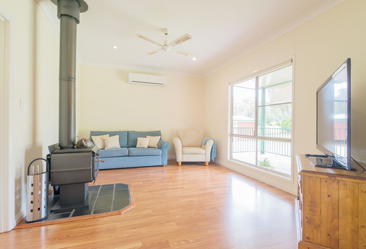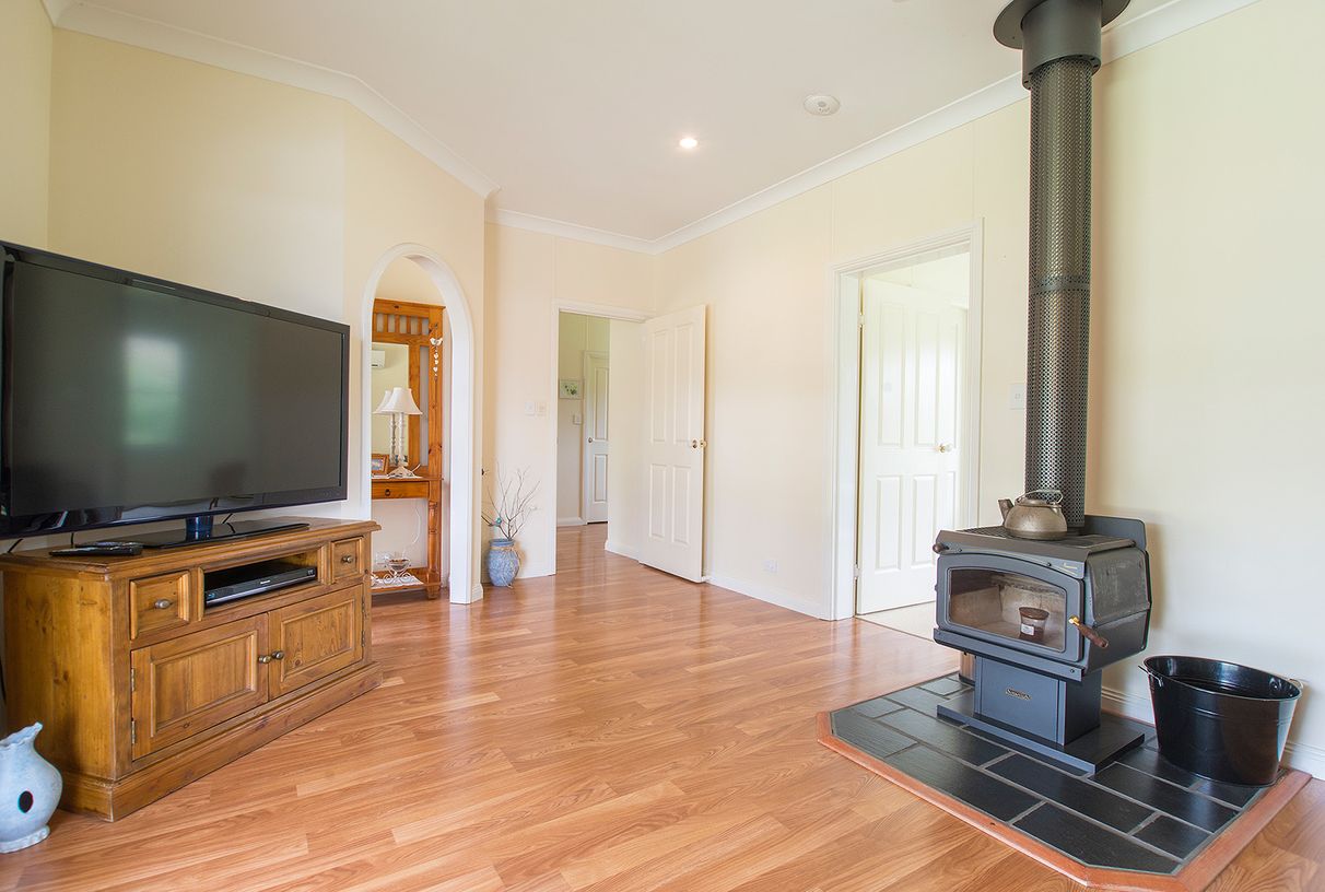 Property consists of three bedrooms, main with ensuite and WIW, second bedroom has BIW, bathroom, kitchen has large pantry and laundry access, separate dining room and lounge room with Rc air and slow combustion fireplace.
