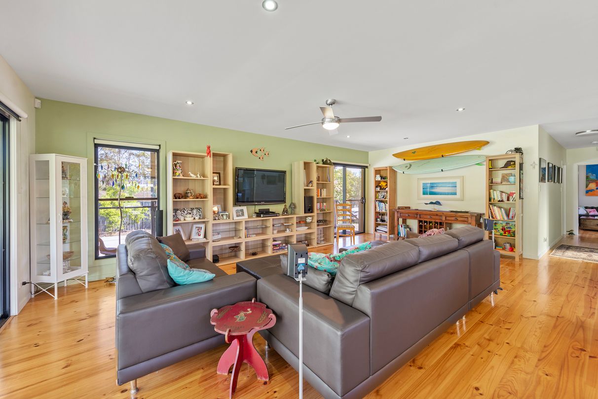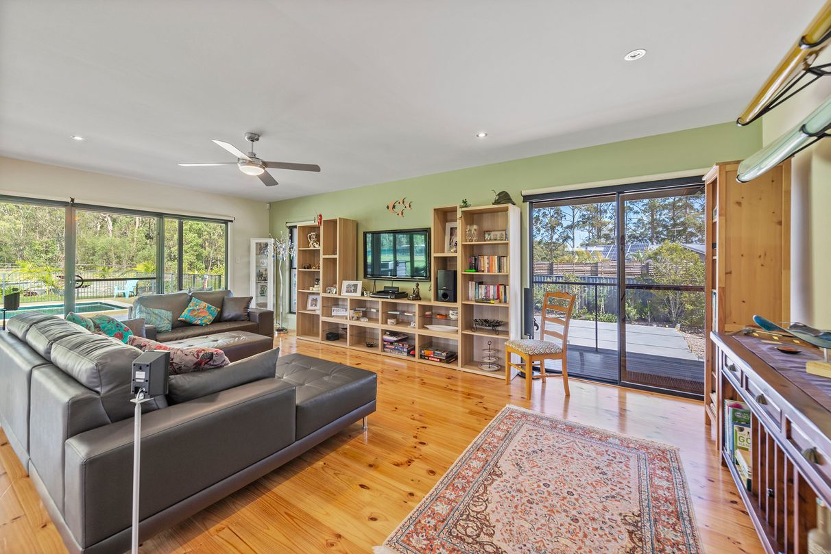 Capturing lovely breezes, the residence is generously proportioned with an expansive open floor-plan accommodating for families, pets and guests of all kinds. Ready to accommodate the modern family in a relaxed, elegant style, the home has been cleverly designed with north facing living and leisure areas which adjoin the lush Bundjalung State Forrest with uninterrupted bushland views.