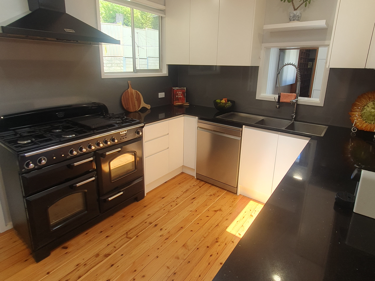 The renovated kitchen comes with upmarket appliances including a gas 1100mm Falcon Aga stove and oven and a family sized plumbed in, water dispensing fridge freezer making meal prep or entertaining a breeze.
