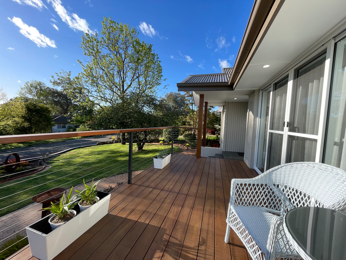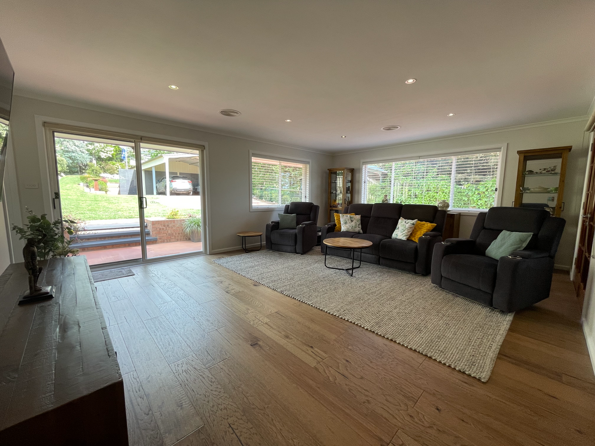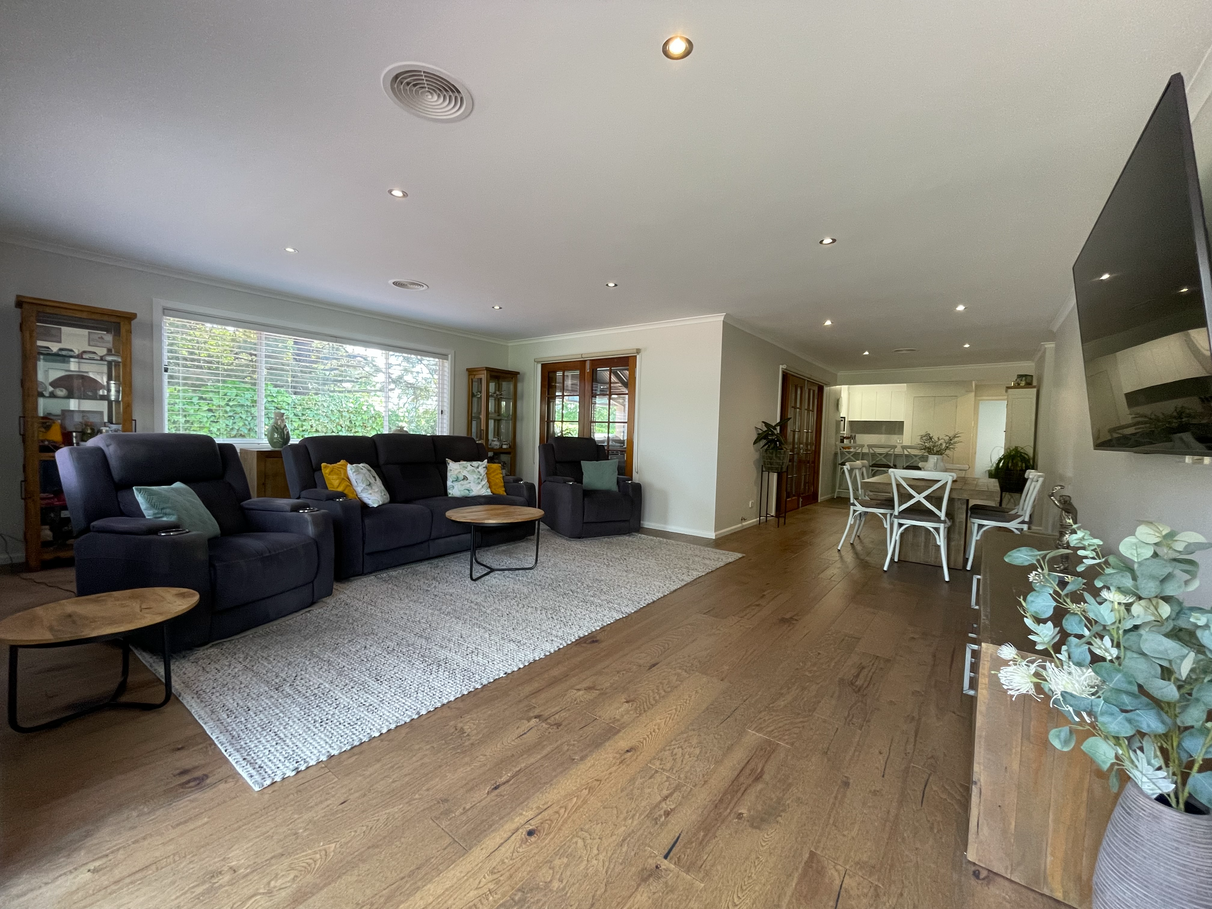 Stepping inside, you instantly feel the warm character in the home with the striking timber floors, high cathedral ceiling and timber ceiling beams drawing you into the front formal living and dining/study. The timber panel feature wall frames the fireplace with updated cosy gas log fire. Double sliding doors draw in natural light and open to the front deck, a beautiful spot to enjoy a morning cuppa while watching the sunrise filter through the trees in the park across the road or take in the views over Yass out to the Yass Weir and surrounding hills. The double glazing to the front of the home provides comfort and outside noise reduction.
