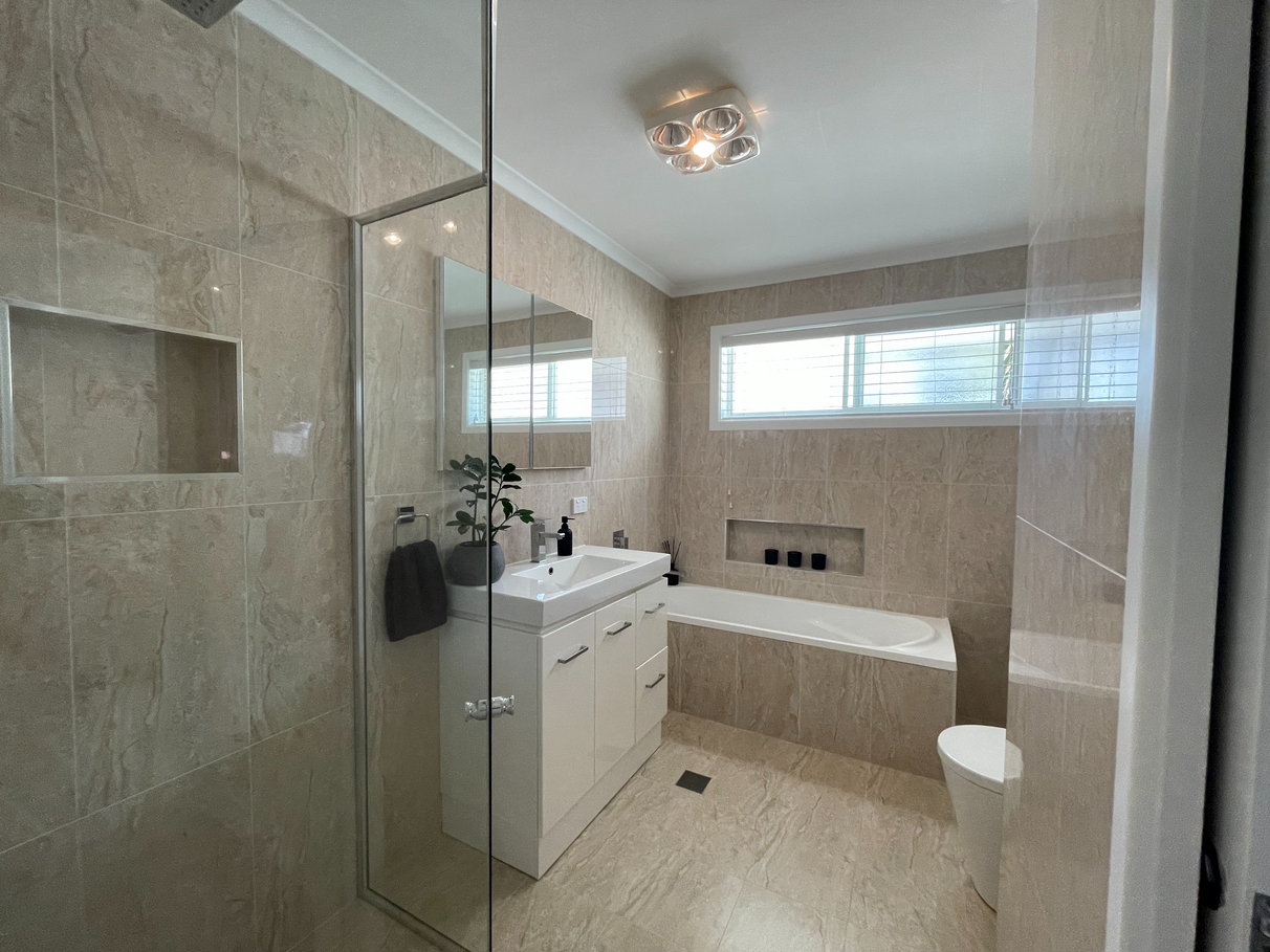 Three generous bedrooms all with built in robes, ceiling fans and new luscious carpet. The main with lovely outlook, double glazed windows and private ensuite. A luxuriously appointed family bathroom serves the additional bedrooms.