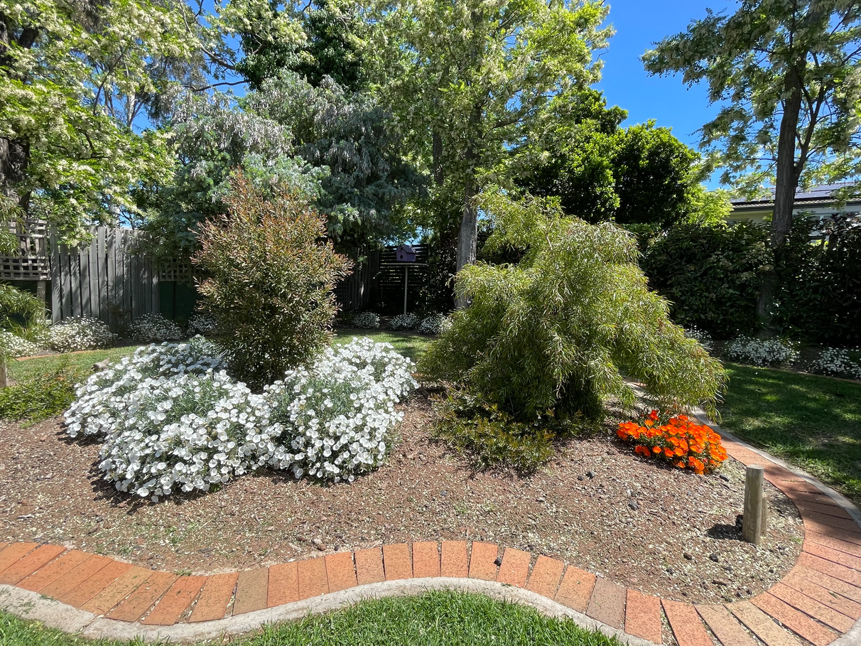 Beautifully landscaped grounds with established gardens, lush lawn areas with distinctive edging for easy maintenance and a rainwater tank complete the package.