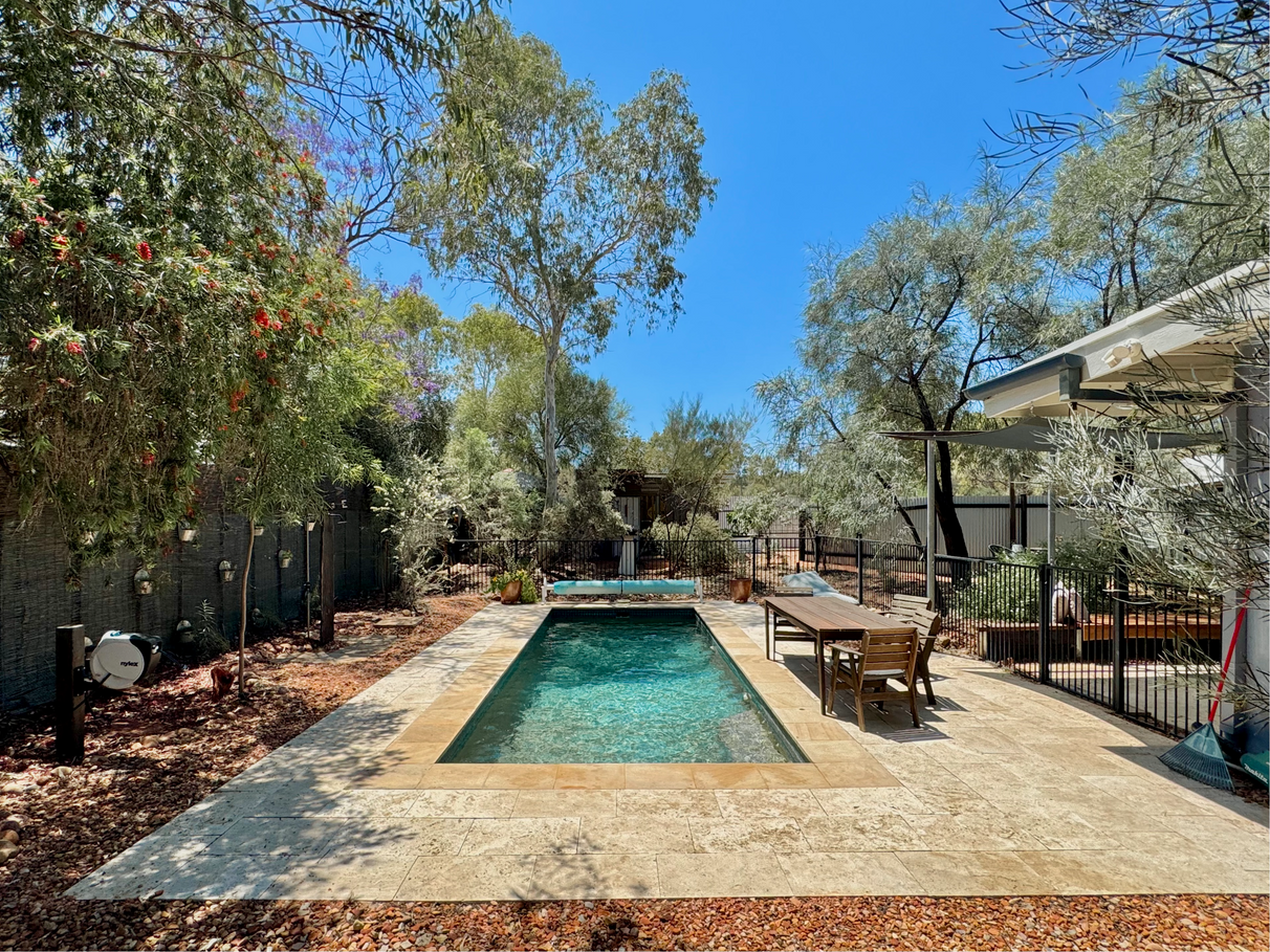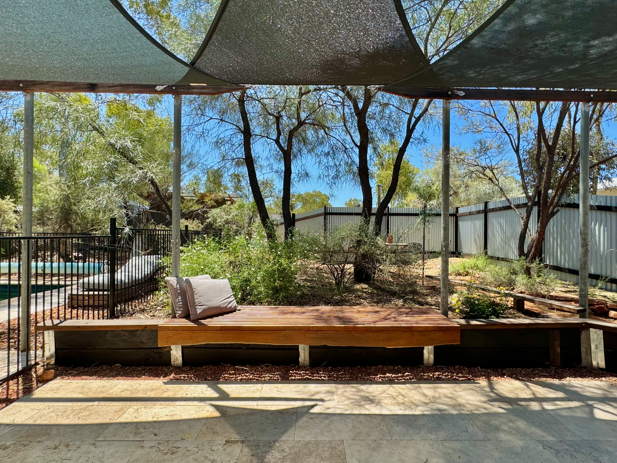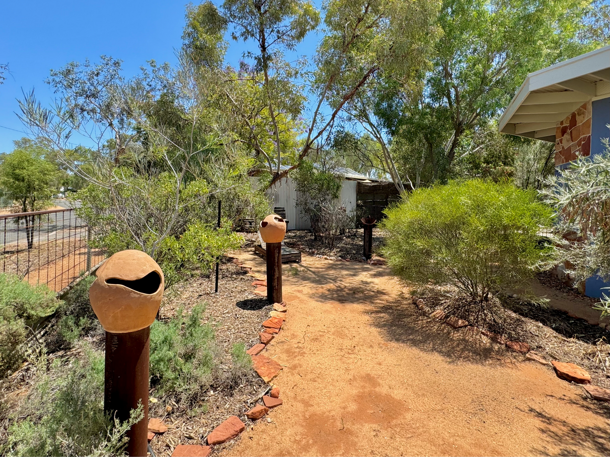 Beautifully established native gardens, offering shade from acacia trees, corkwood, and ghost gums.