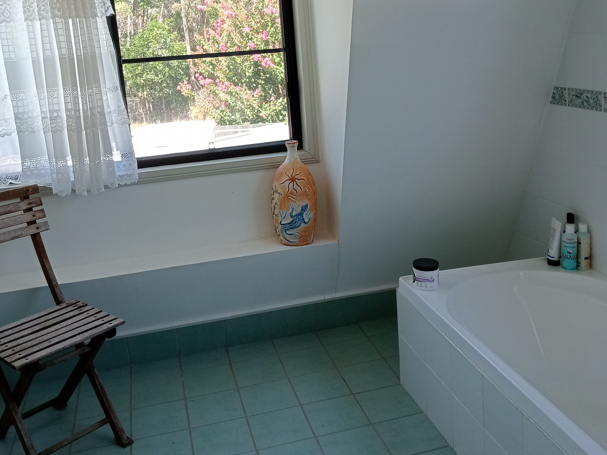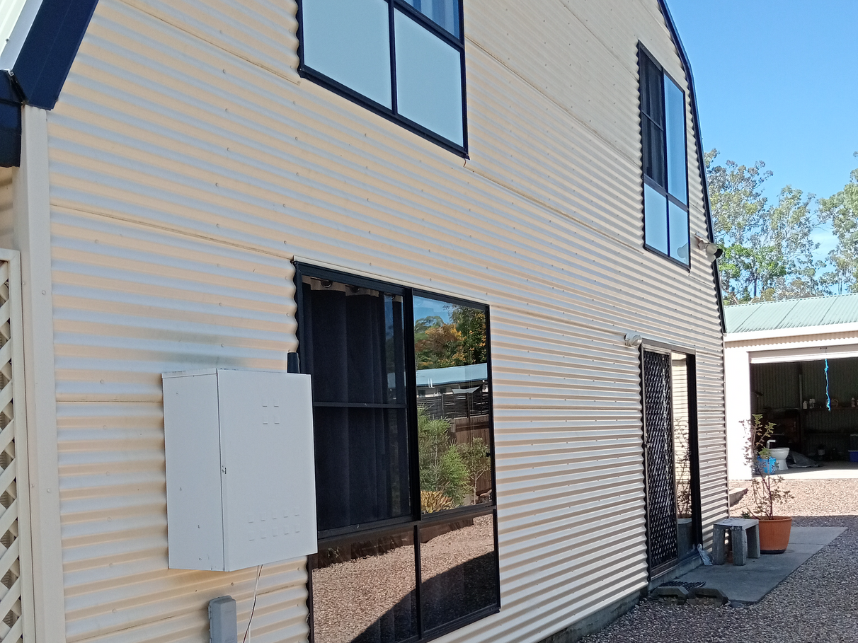 Large windows allow plenty of breeze and light. Tiled floors downstairs and carpets upstairs. Split system air conditioning: (brand new). Fans in all areas. Solar hot water, biocycle septic. Rubbish collection. Very good phone reception.