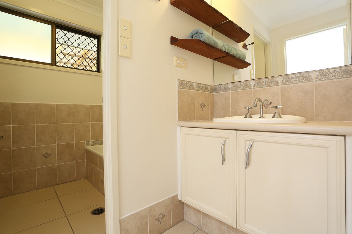 Enjoy a tasteful colour palette, tiled flooring, downlights and ceiling fans throughout, along with discreet European laundry and huge Storage.