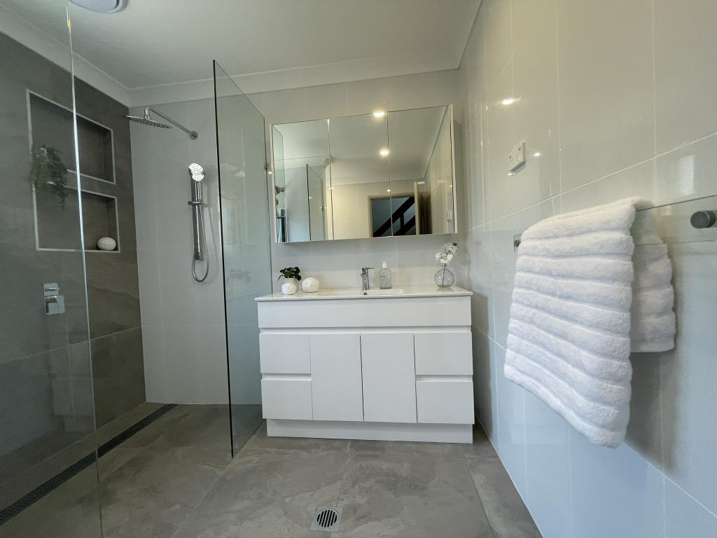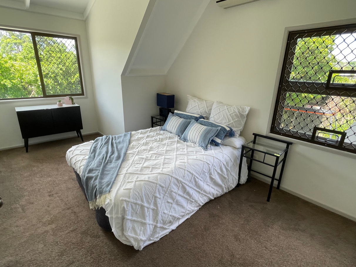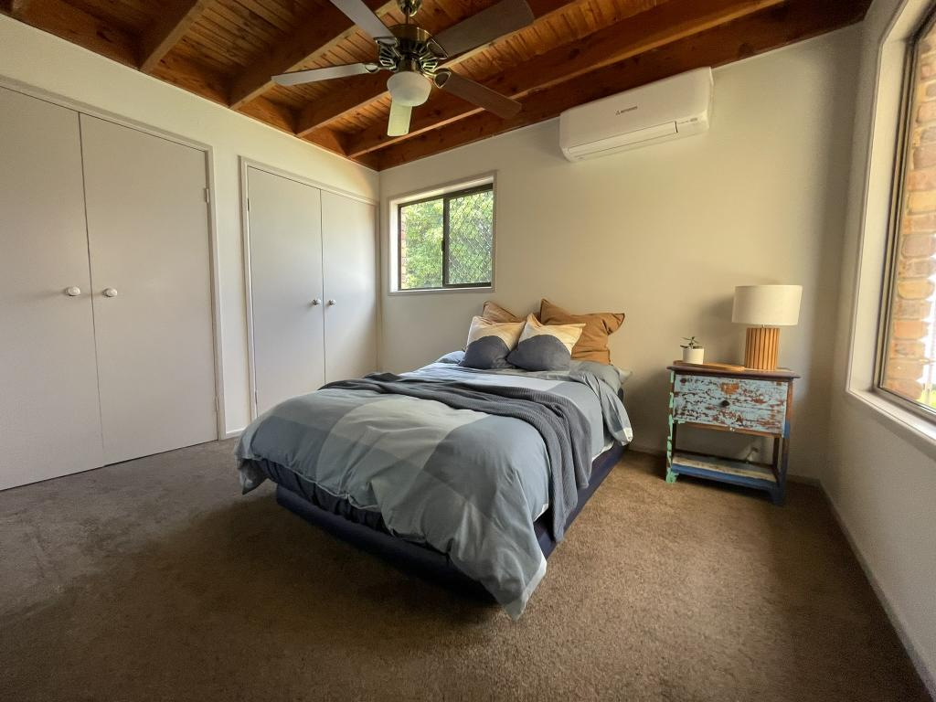 This charming two-storey home has a unique architectural design, boasting wooden ceiling beams and freshly painted neutral tones throughout. It has an open plan living and dining area, with a modern kitchen that is equipped with a gas stove top and oven, as well as a stylish whisper-quiet dishwasher. It has three generous bedrooms, all with built-in robes, and an additional lounge/study area upstairs (which can be used as a teenager’s retreat). Reverse cycle air conditioning, as well as ceiling fans, have been installed throughout the home, including in the bedrooms for a comfortable night’s sleep. A brand-new bathroom, with a double shower featuring dual rain shower heads and floor-to-ceiling tiling, is a spectacular feature of this home.
